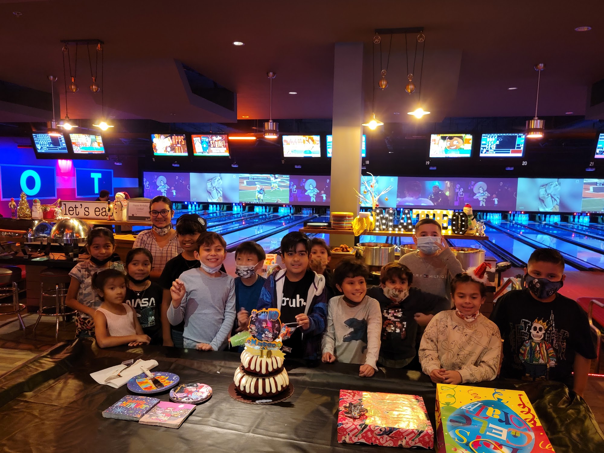 Came in on a Friday night around 7pm it was pretty crowded but they still had lanes available. The staff was outstanding thanks so much to our server Ella and the manager Tomas was a huge help to our entire party.