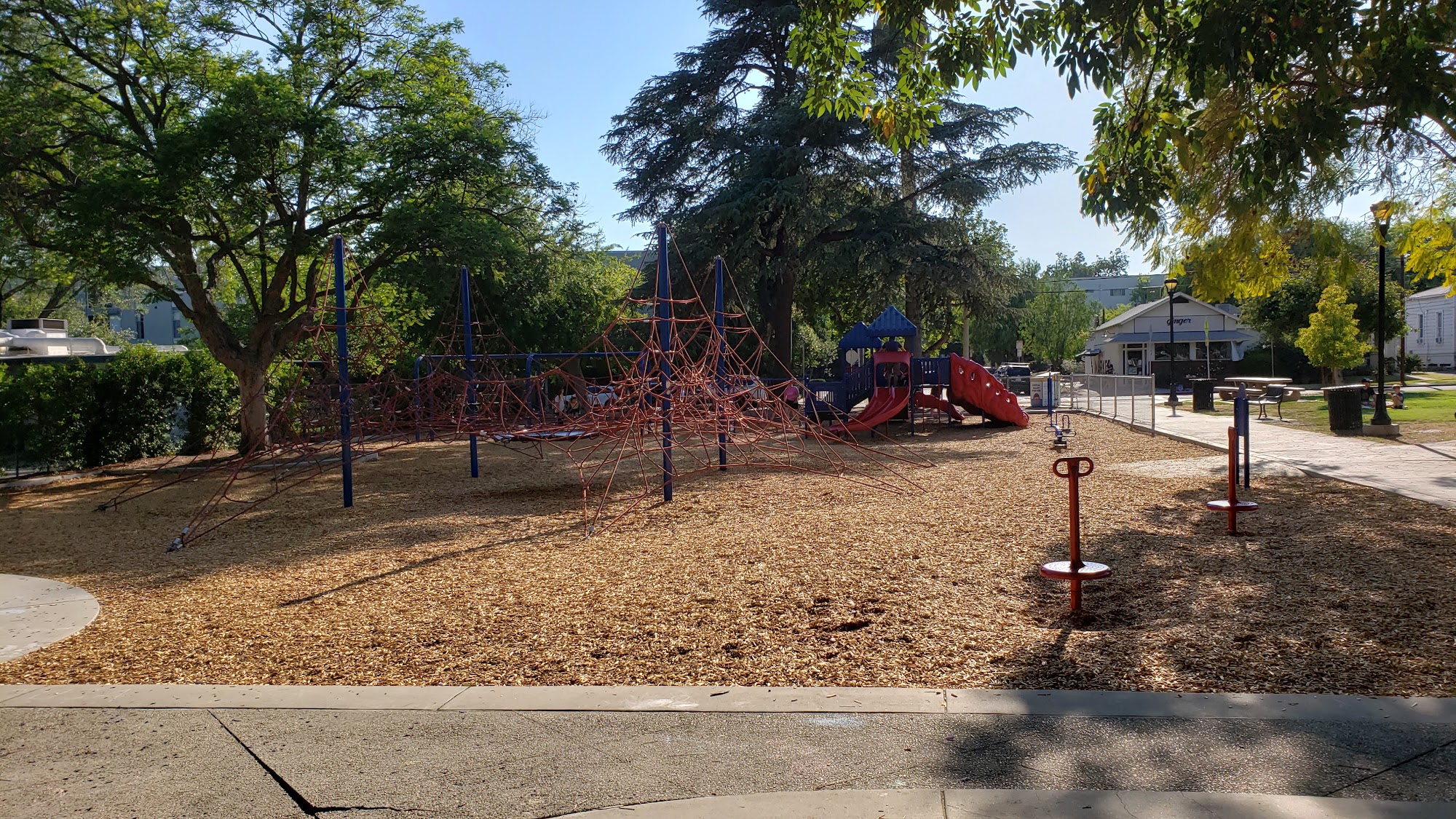 Nice little park with well-maintained tennis and basketball courts, as well as a playground and softball field. For the doggies, there’s a poop bag dispenser, and some doggie drinking fountains, though one of them was broken.