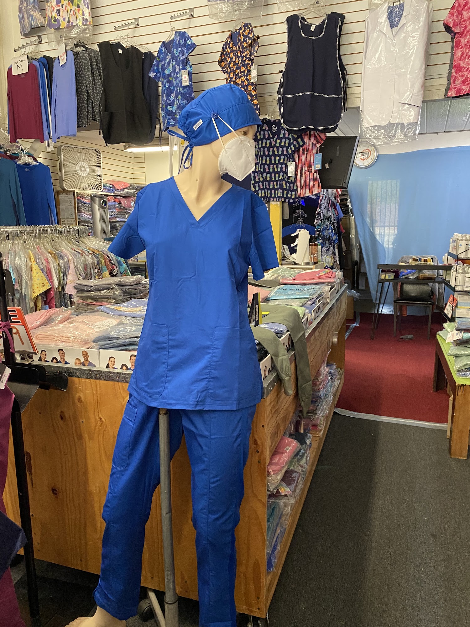 I always come here for my scrubs! The woman who runs the shop (I'm sorry, I'm not sure of her name) is so nice and helpful and will always make sure to find what you need. There is a large selection too!!