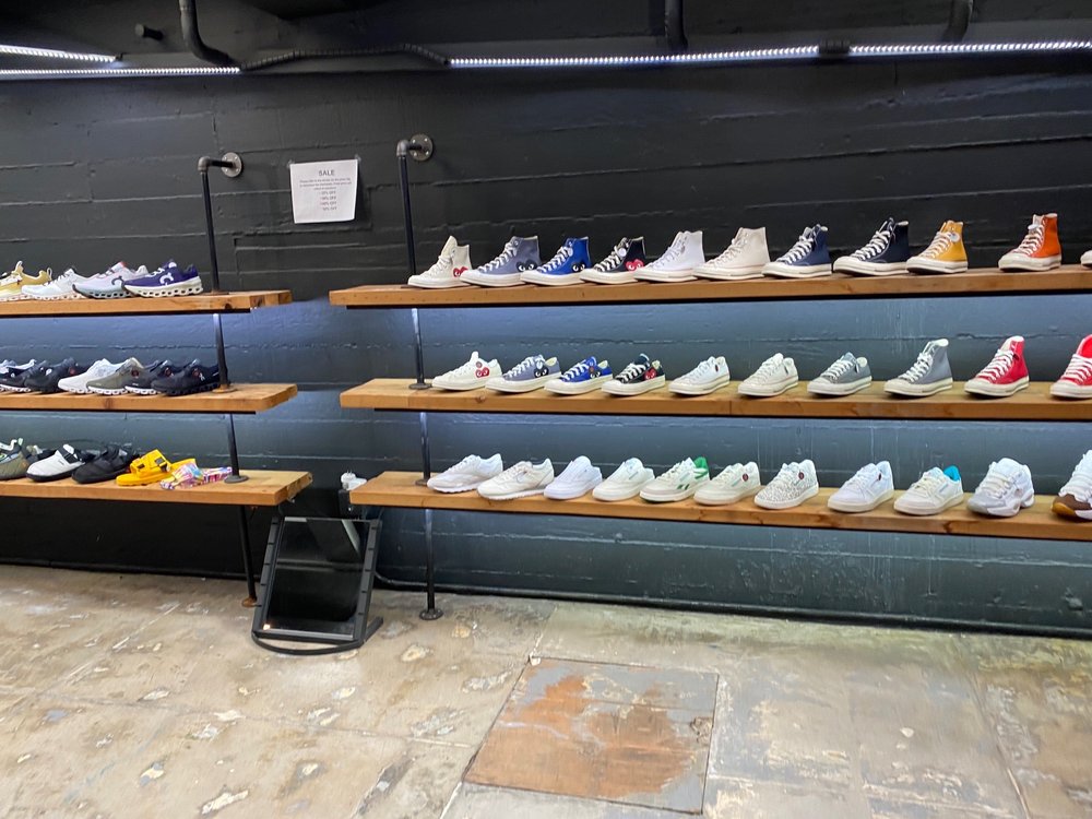 Very cool but hidden in basement sneaks and street clothing store. They have a lot of hip New balance shoes as well as all the major brands, some obscure new cool brands as well. Plenty of caps and tees. Friendly helpful service too. Follow the stairs down into this cool shop.