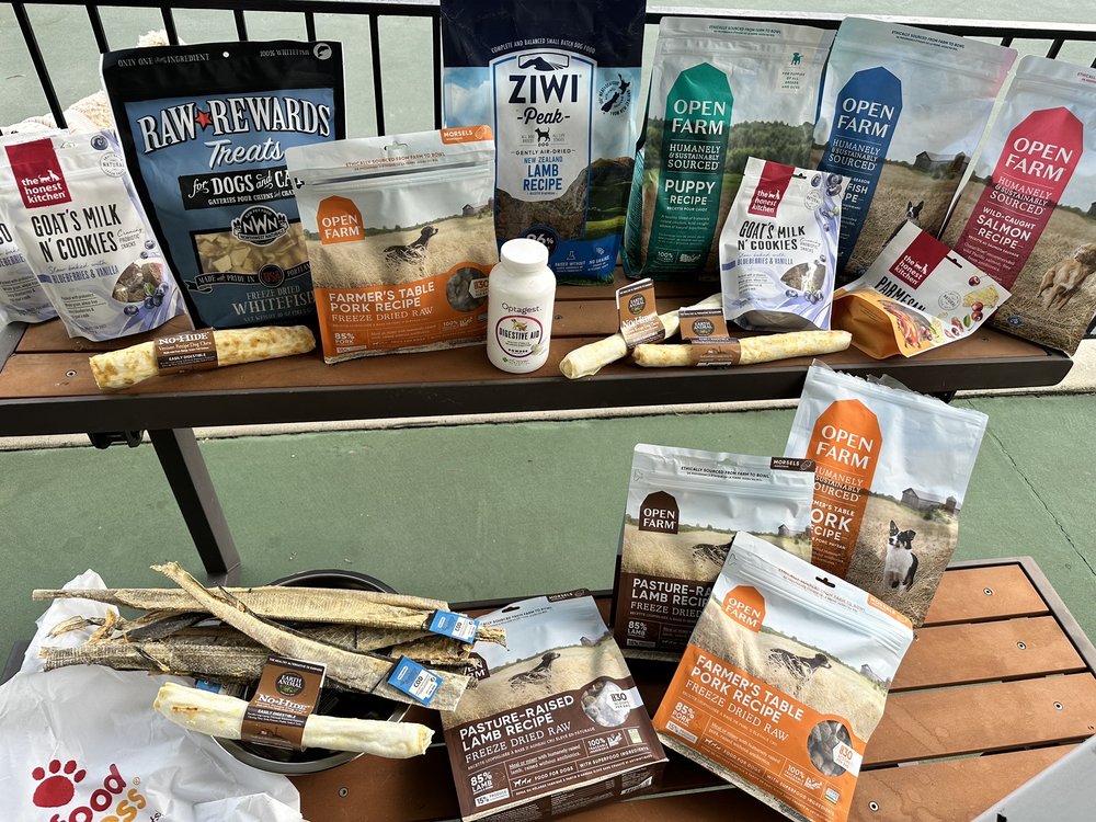 My precious fur babies luv the baked treats from Pet Food Express. I found the perfect odor neutralizing finger wipes for my shihszu's stinky tears stains.