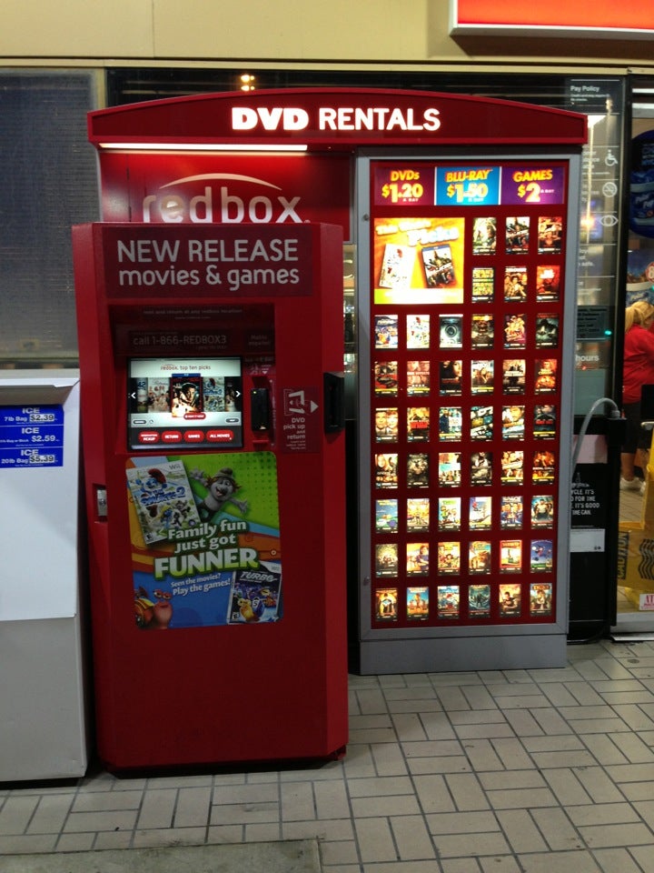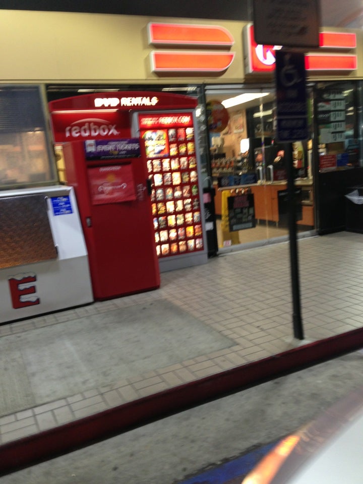 The Red Box is in front of the mobile gas station. There is a fairly big homeless population in this area. If you don't want to cook be hot up for money you may want to go to the Ralph's down the street. Upside it is outside so you don't have to worry about not being able to use it.