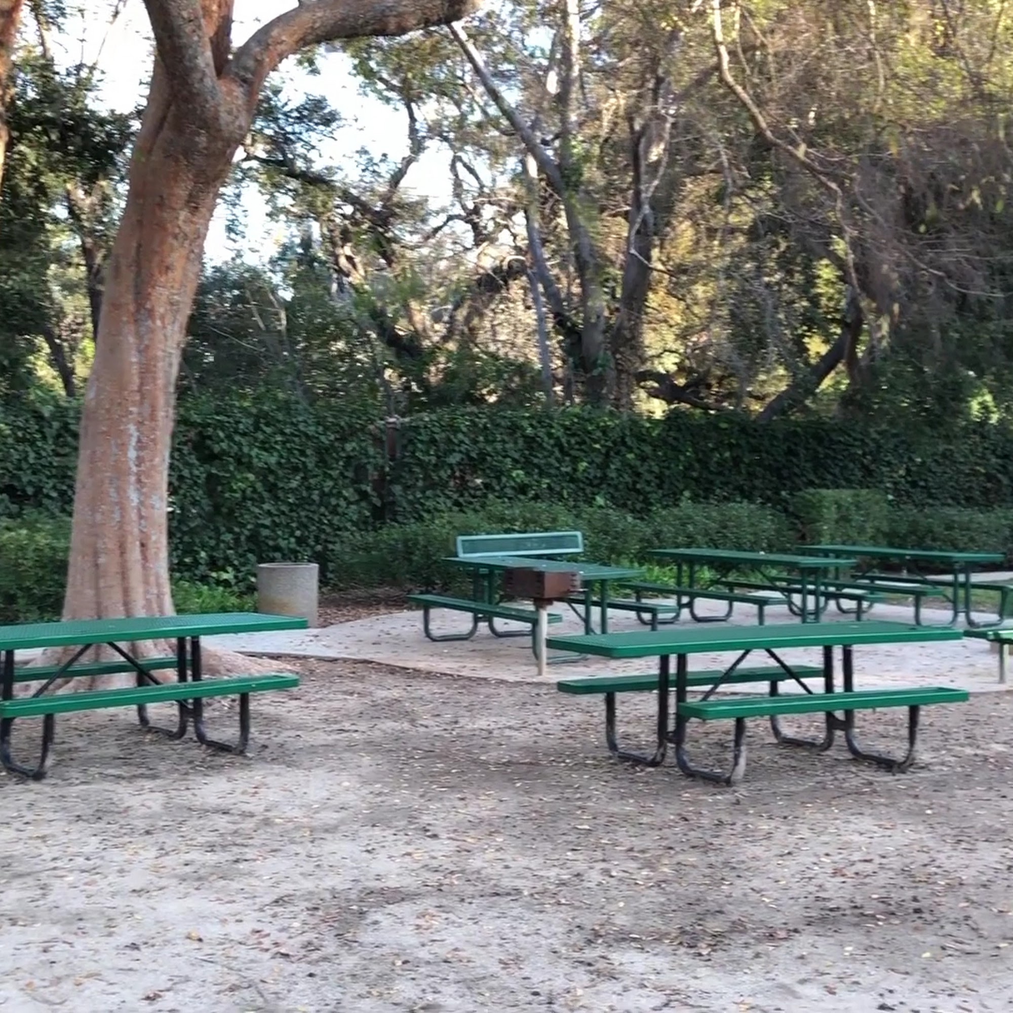 Very nice secluded park. It does have a very small playground but good for small children. It is a sand playground, so definitely watch the kids as some of the area can be slippery with the sand. Lots of tables for families to have picnics or lunch and lots of shade.
