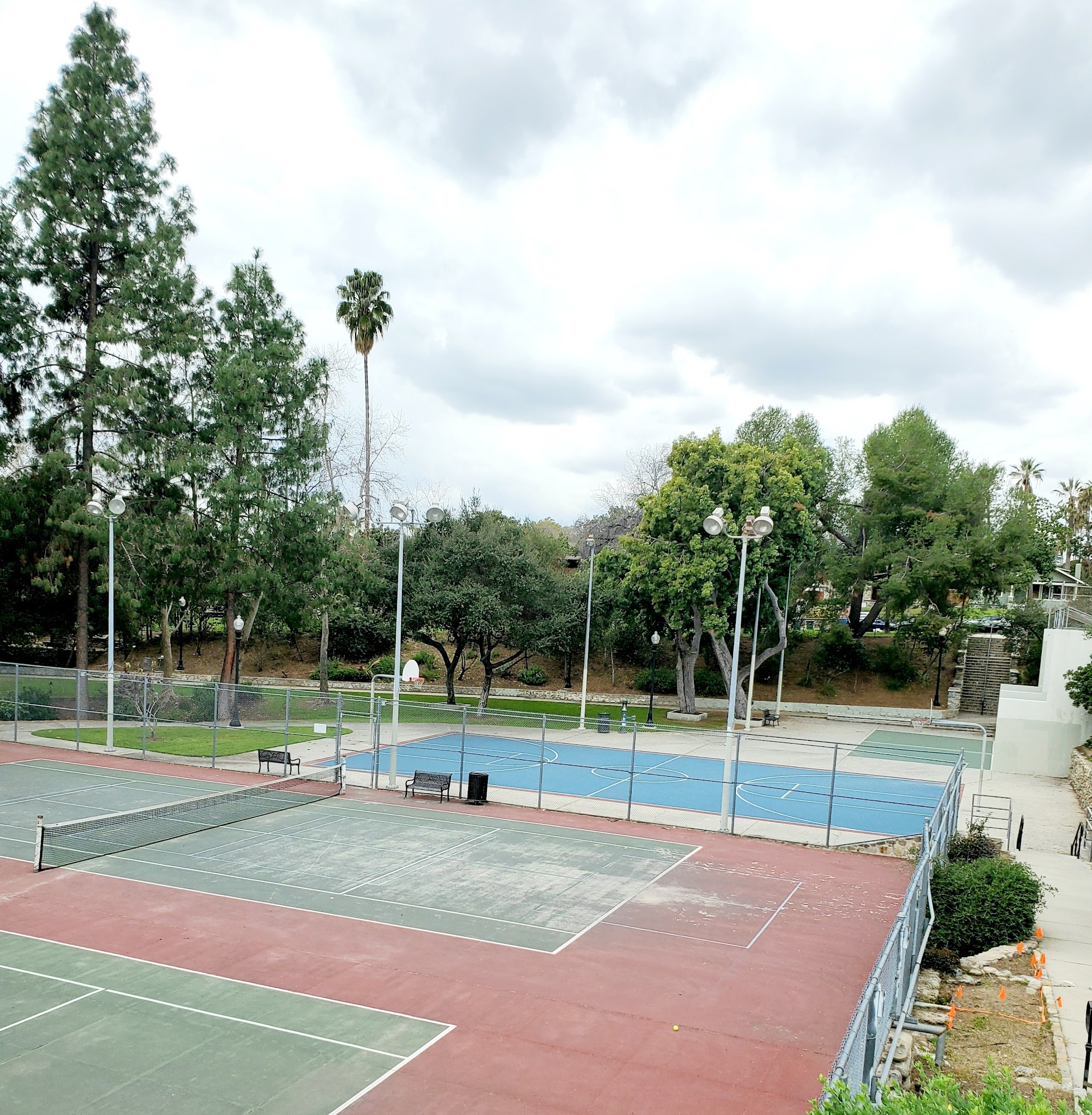 Washington Park is a beloved destination in Pasadena, offering a variety of activities for families and individuals alike. The park features a shaded playground equipped with swings, slides, and a jungle gym, making it a great spot for young children. Visitors can enjoy lighted tennis and basketball courts, as well as handball courts, along with walking paths surrounded by trees. There are ample picnic areas with tables and BBQ pits, perfect for enjoying a meal outdoors. The park's rich history dates back to 1922 when it was designed by renowned landscape architect Ralph Cornell and horticulturalist Theodore Payne. Washington Park is known for its natural beauty, including a charming bridge and lush green spaces ideal for relaxation, exercise, or a peaceful lunch break. While the park is generally clean and well-maintained, some visitors have noted minor cleanliness issues in certain areas. Overall, Washington Park is a picturesque, family-oriented space, making it a favorite for recreation and leisure in the community.