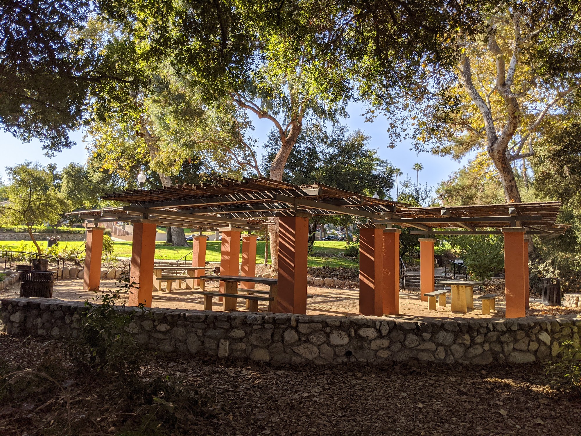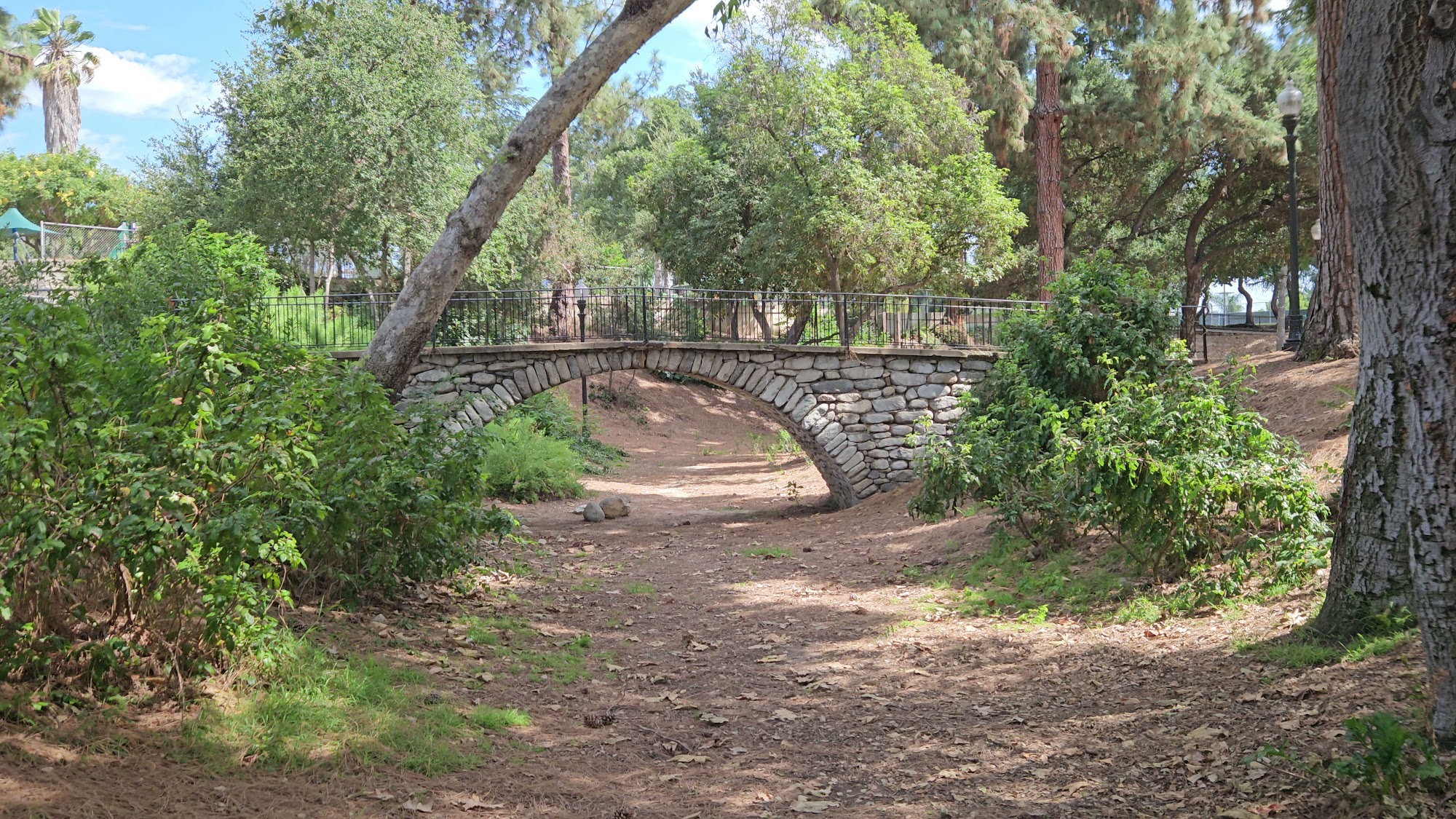 One of my favorite parks in Pasadena, with some natural areas. There’s an upper area with the playground and restrooms, and a lower area with picnic tables, and basketball, tennis, and handball courts. Plus there’s a natural areas, with a cute bridge that’s fun to explore with a dog.