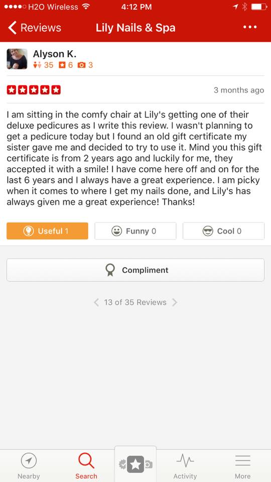 Services are great they do a really nice job on my nails and my pedi.
