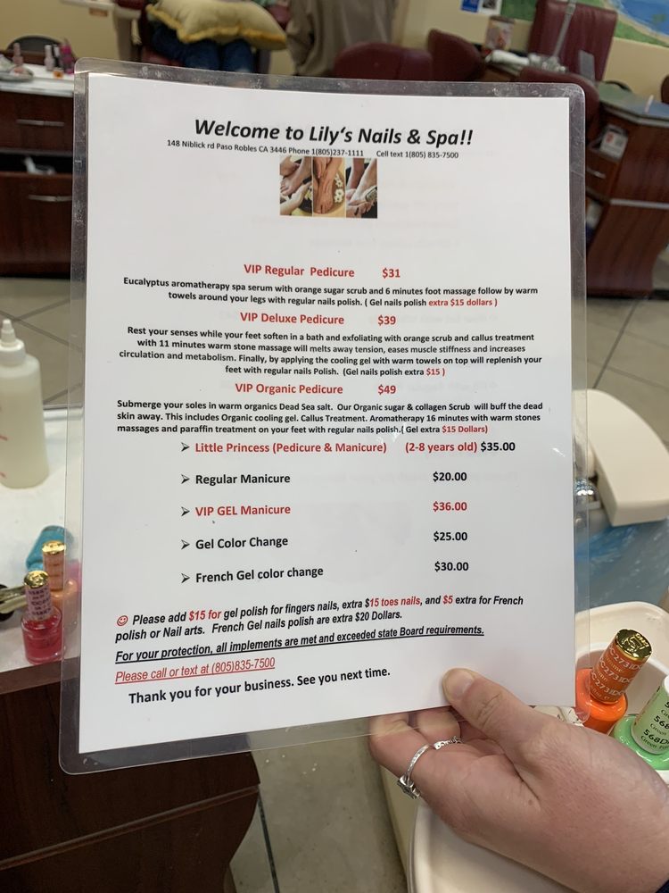 Lily Nails & Spa offers a welcoming experience to walk-in customers. The staff is kind and takes their time to provide excellent service. They are skilled at making feet and hands look their best, even after heavy gardening. The shop is professional and has a great selection of gel colors. The regular staff members, including the husband and wife owners, are fantastic and provide a consistent good experience. Overall, customers have a great time and leave feeling relaxed and happy.