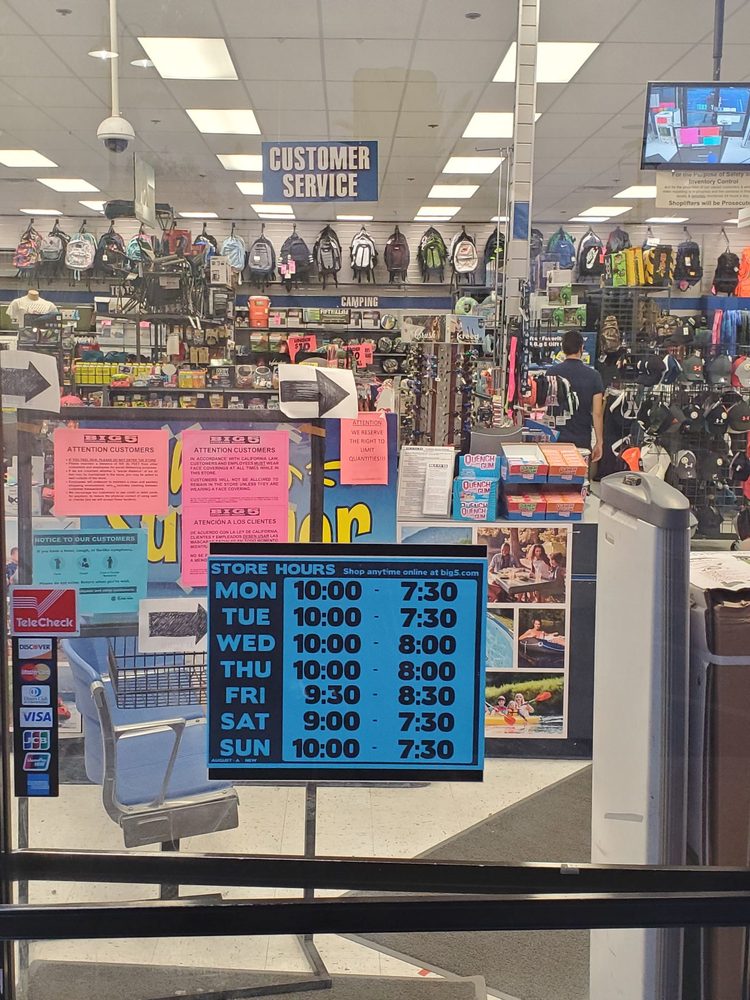 Big 5 Sporting Goods is a large, full-line sporting goods store covering about 11,000 square feet. It offers a wide range of products including athletic shoes, apparel, accessories, and outdoor and athletic equipment for team sports, fitness, camping, hunting, fishing, tennis, golf, winter and summer recreation, and roller sports. Customers praise the store for its great service and knowledgeable, courteous staff, highlighting team members who excel at the ammo counter and at the register. The store always has what shoppers need, with a huge variety of sports gear, swimming supplies, kids and adult clothes, and shoes. Prices are competitive, especially for items like knee braces and sneakers, with frequent specials that make shopping affordable. The large parking lot adds convenience, making Big 5 a popular choice for sports and outdoor equipment needs.