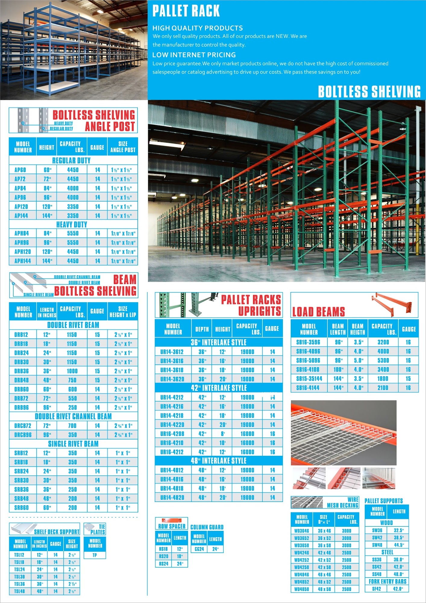 Great place to buy racks from very competive in price and offers great customer service. If you want racks for a warehouse this is the place to go. I had them shipped to my warehouse in Colorado very competive prices on shipping as well.