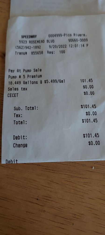 I always come here to fill my Toyota matrix. I get premium with around depending on the price at the time $30 -$35 I fill up and the gas lasts for a good while. Recommend this place always clean inside helpful customer service as well.Ever since they renovated this place I come for snacks or gas.