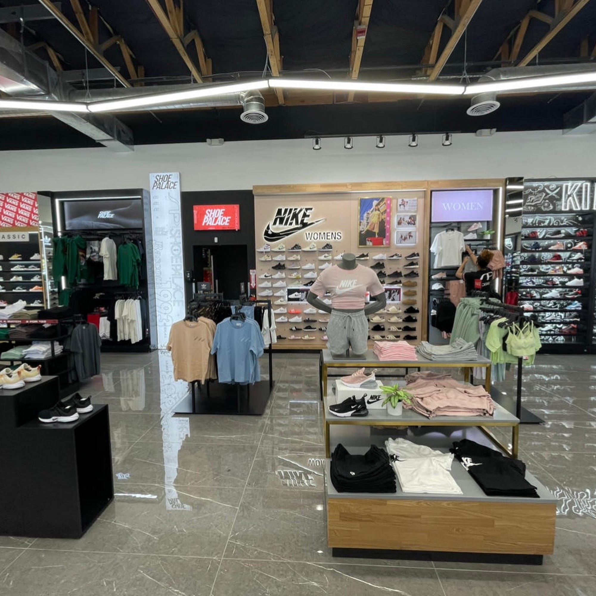 Shoe Palace is a wonderful store with a great style and selection of sneakers, shoes, and clothes. Customers like the different varieties of colors and styles, noting it is a great place for kids shoes and for the whole family. Reviews mention plenty of shoe options, including Nike, Jordan, Converse, and Vans. The service is described as amazing, helpful, patient, and attentive with beautiful smiles. However, some note that staff do not always greet customers and you may have to ask for help first. There is also feedback that size varieties could be improved. Many customers love this place and really recommend it.
