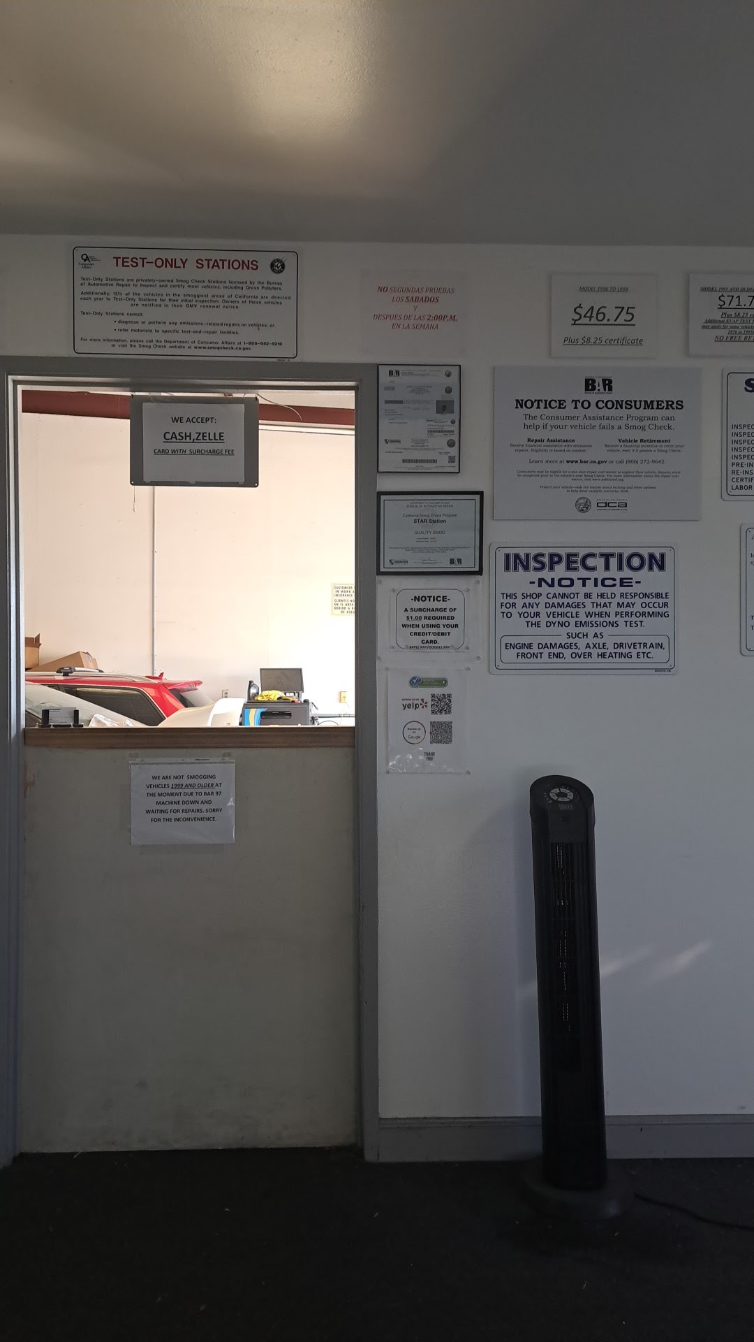 Quality Smog provides fast, efficient, and professional smog check service. The process is consistently described as lightning fast and easy, often taking only 10 to 20 minutes. The shop is known for its competitive and reasonable price, offering genuine and courteous service. They are knowledgeable and efficient, providing quality service. A major convenience is their ability to send information directly to the DMV, making it hassle-free. They accept multiple payment methods including Zelle, Venmo, and credit cards. The business is appreciated for being open on a Sunday. Customers find it a well worth visiting spot and highly recommend it.