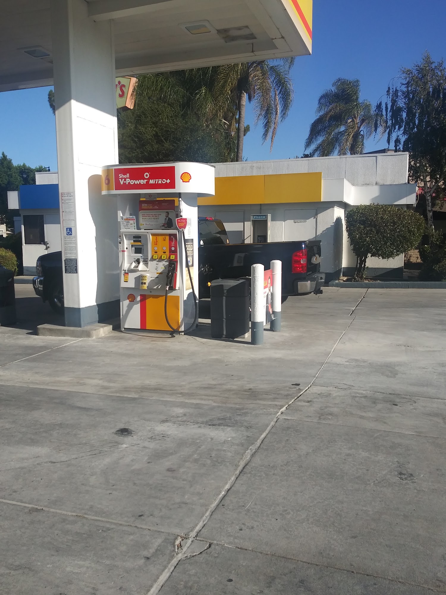A convenient gas station. Easy off and on the freeway. The restroom is locked and clean.
