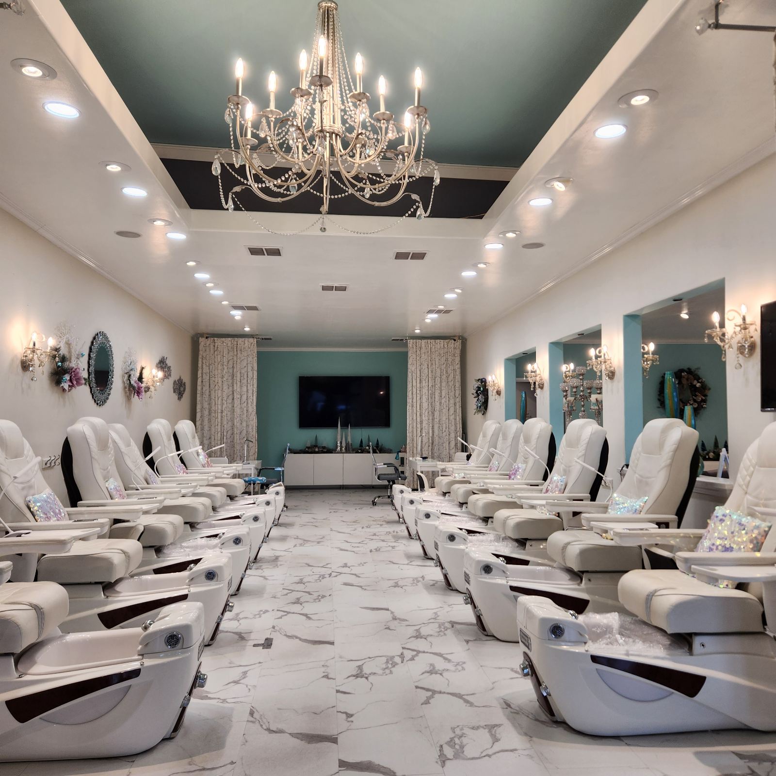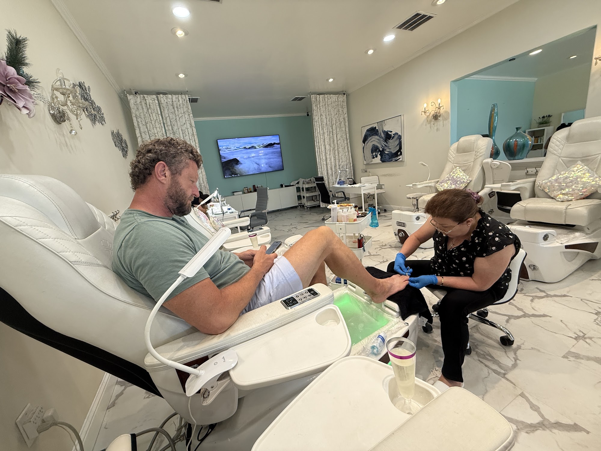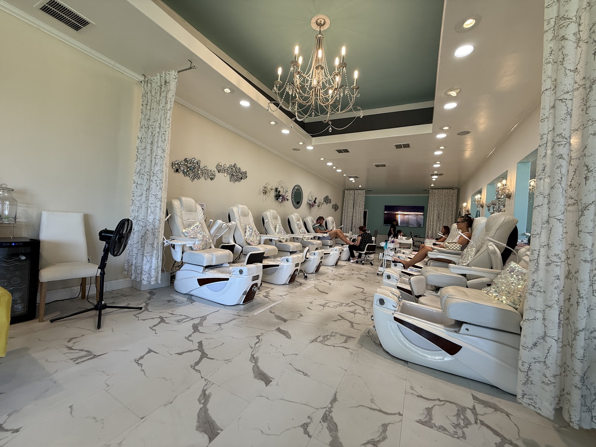 Very nice place with lots of big massage chairs. It has a relaxed vibe almost like a high end spa. We enjoyed the free wine and hot stone massages at the end of our deluxe pedicures. I’m sure we’ll be back.