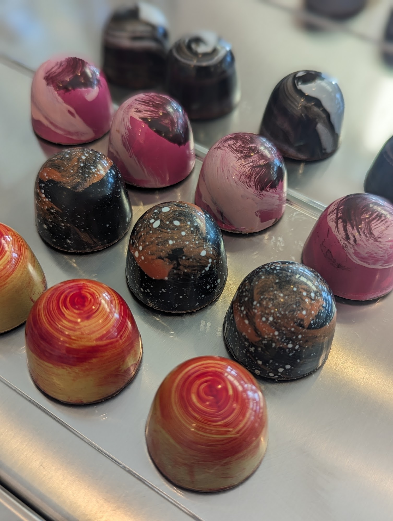 Hanna's Chocolates is a delightful business known for its beautifully crafted and delicious chocolates. Customers praise the high quality and thoughtful design of their confections, which include a variety of flavors like fruity white chocolates, matcha, lemon cheesecake, pineapple, coconut, macadamia nut, fig with goat cheese, and more. The chocolates are not only tasty but also visually appealing, making them perfect for gifts or special occasions. The store offers an impressive selection of seasonal macarons, chocolate truffles, cocoa bombs, and sea salt caramels, all made with careful attention to ingredient quality. Many reviewers mention that the chocolates are complex and decadent, with thin shells that add to the overall experience. The packaging is also beautiful, making Hanna's a great destination for gift shopping. Customers are excited to find a local shop that offers gourmet chocolates, with some noting they no longer need to drive far for good quality chocolates. The friendly service and extensive variety ensure that visitors will want to return to try more flavors and enjoy the thoughtfully made treats. Overall, Hanna's Chocolates is highly recommended for anyone seeking premium, artfully crafted chocolates and sweet treats.