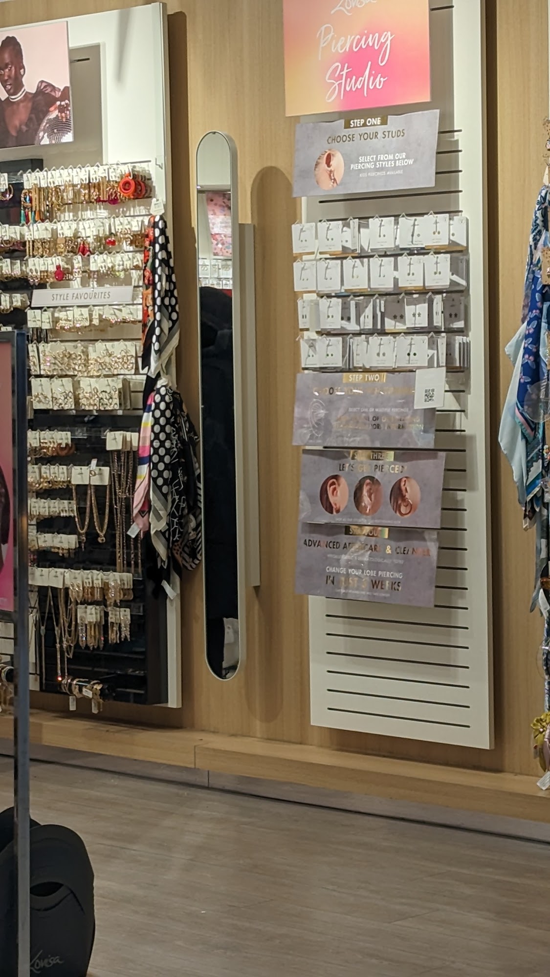Lovisa is a store for piercings and low cost jewelry. The staff is extremely helpful, personable, friendly, and caring. They are detailed oriented and walk customers through the process, double-checking placement. The experience is fantastic and a pleasure, making customers feel comfortable. The shop is very clean and the piercing procedure goes great and quickly. They provide an after care card and do not pressure up selling. Customers recommend coming here for piercings for both first timers and others, noting it is a better choice than nearby stores. The jewelry is very nice and at the best prices around.