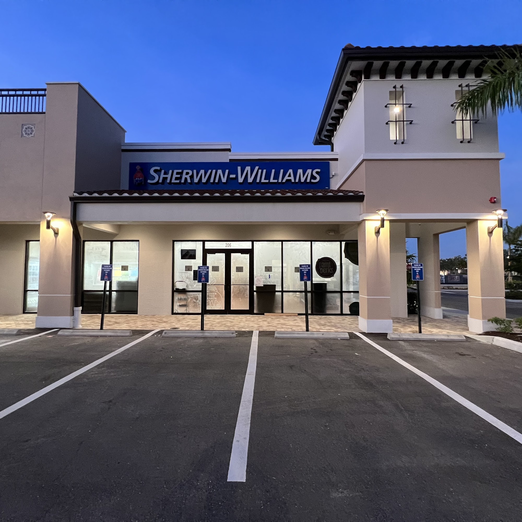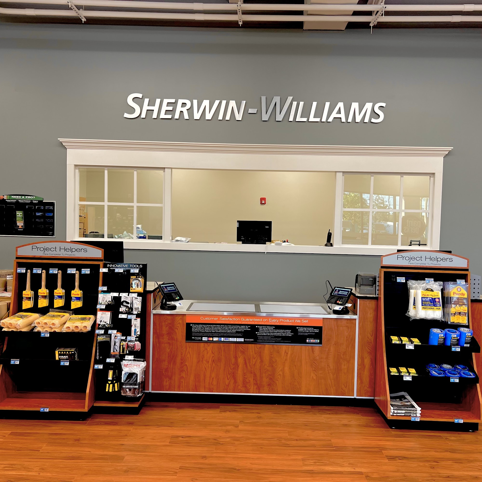 Convenient location in strip plaza just in front of Lowe’s off Corkscrew by I-75. Helpful service & clean, newer store. I’ve also recommended to a number of my clients for their painting supply needs. Many own newer homes that were builder painted with Sherwin Williams product.