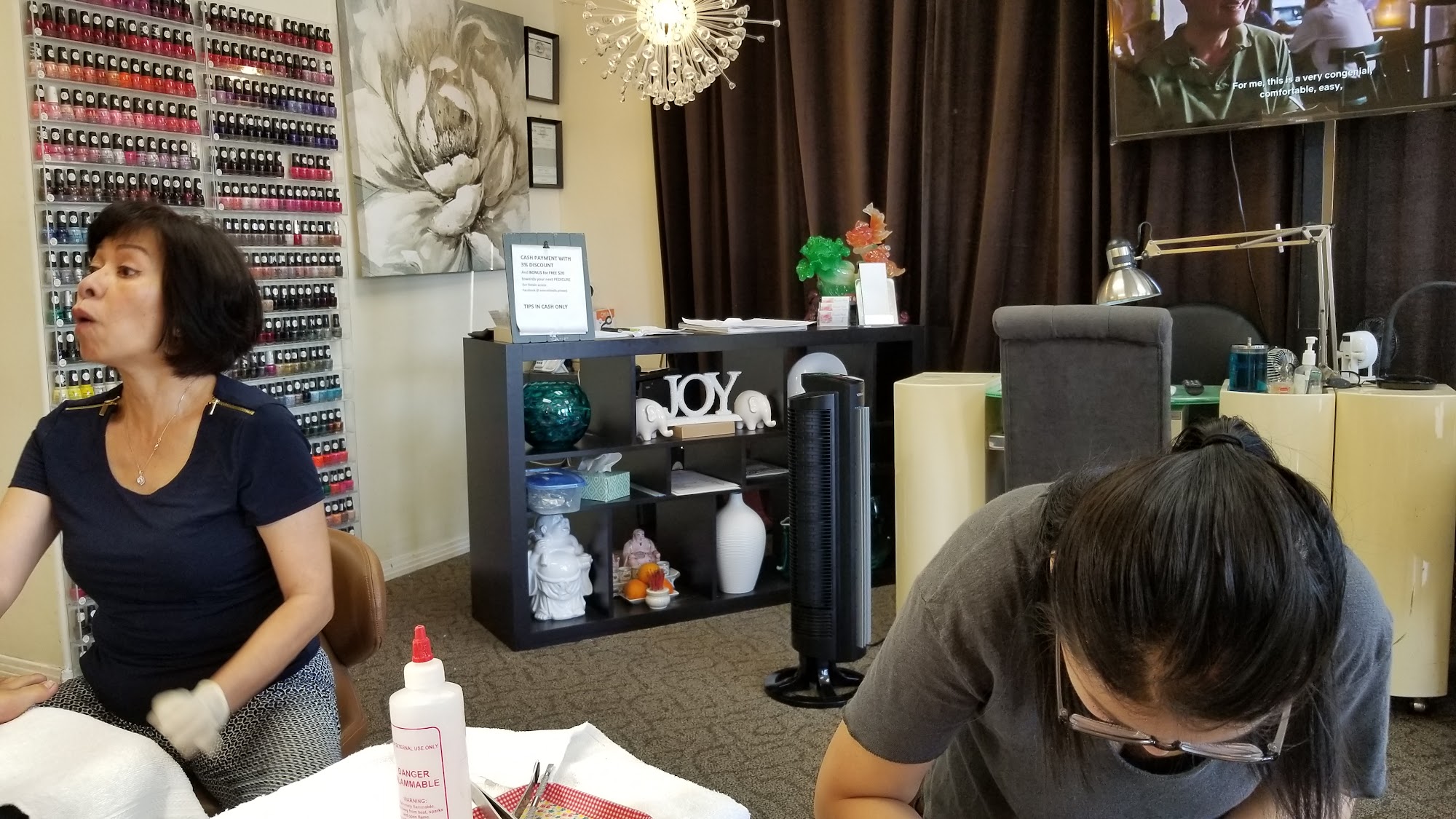 The service and professionalism is great! The attention to detail is clearly seen. I don't go anywhere else for my nail care. Thank you Emerald Nails!
