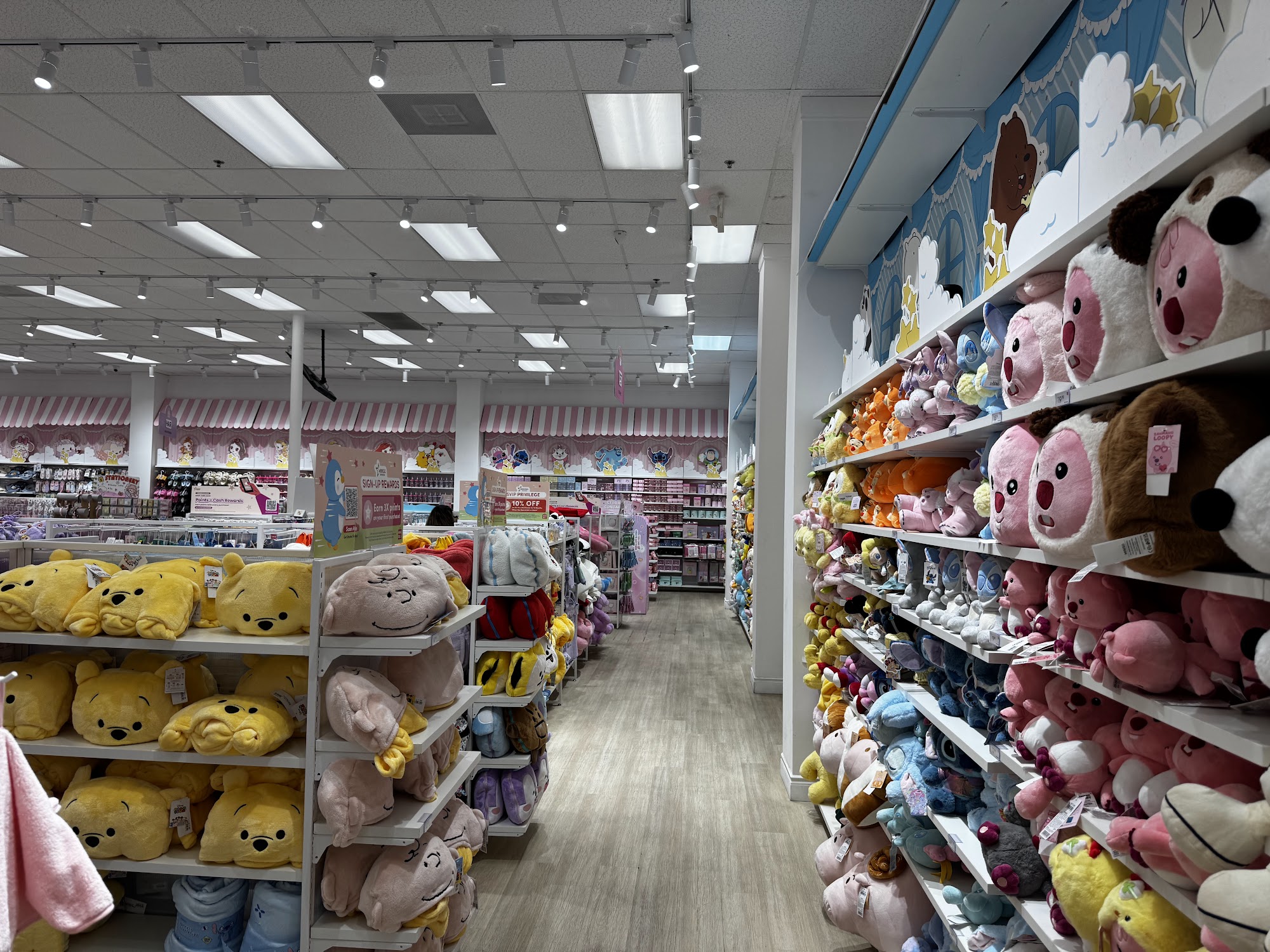 Miniso is a large and bright store that offers a wide variety of products, making it a popular shopping destination. The store is well-organized with wide aisles, pastel displays, and themed sections that make browsing easy and fun. Inside, shoppers can find trendy toys, plushies, Sanrio collaborations, blind boxes, snacks, drinks, beauty, hair, and body care items, household goods, accessories, and numerous knick knacks. The store's selection is huge, with many cute and soft plushies that bring joy to visitors. The store's layout and lighting highlight the products effectively, creating a whimsical and inviting atmosphere. Collaborations with brands like Sanrio, Disney, Marvel, and We Bare Bears add a collectible charm, making shopping here feel like a fun discovery. The snack section is thoughtfully curated with unique Asian treats not typically found in big-box stores, adding to the store’s appeal. The store is clean, organized, and wheelchair accessible, even amid ongoing construction nearby. Staff members are friendly, helpful, and quick to restock items such as blind boxes, although sometimes there are only a few workers on shift, which can lead to minor delays. Visitors appreciate the helpfulness of the staff and the store’s large size, which allows for a broad selection of current promotions and older items. Many customers have enjoyed exploring the store, purchasing plushies, display items, and collectibles, and look forward to returning. Overall, Miniso is regarded as a fun, colorful, and enjoyable shopping experience with a wide array of cute, affordable, and high-quality products.