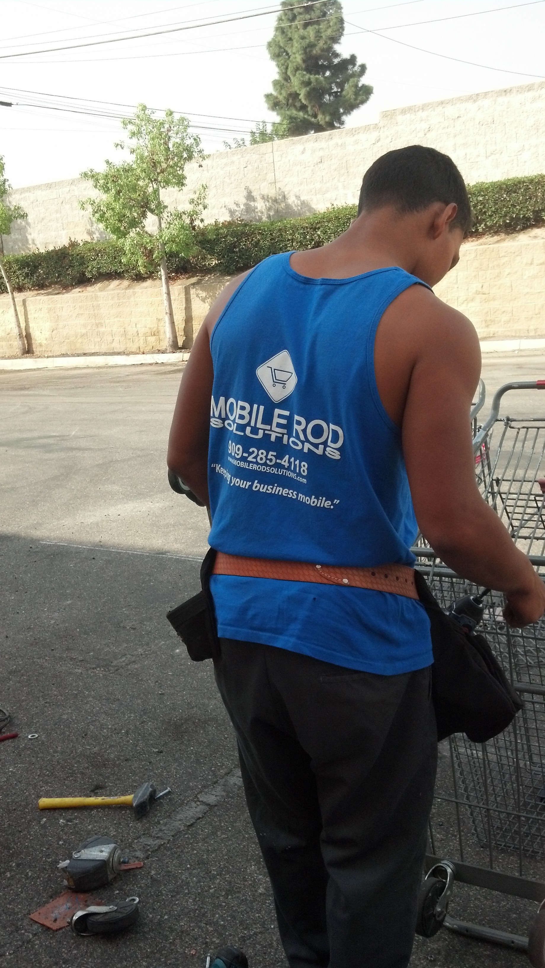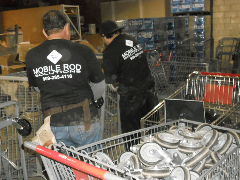 Mobile Rod Solutions, Inc. is the premier shopping cart repair company in Southern California! Our expert technicians repair shopping carts and backroom equipment. We are a shopping cart and locking mechanism equipment repair company working within all markets in Southern California and some areas within Nevada and Arizona. We can repair or replace any of the following shopping cart parts: wheels, casters, handles, seat belts, leg hole enclosures, bumpers and locking wheel installation (all meeting ASTM standards). Also, we work on the locking mechanism for the shopping carts so they can't be stolen.