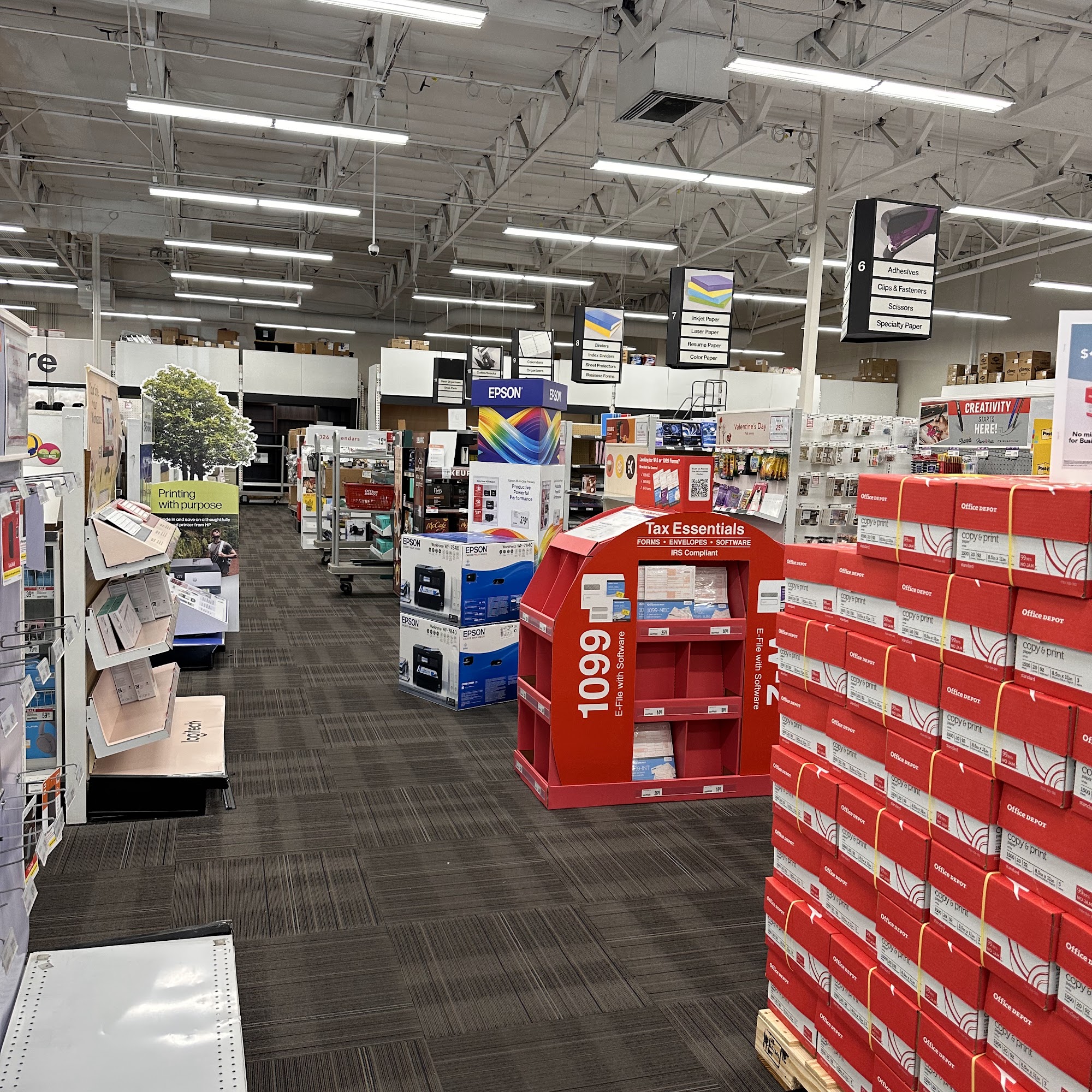 Office Depot offers a variety of supplies for both business and home offices, including paper, ink, furniture, technology, cleaning, and breakroom items. Customers can now enjoy curbside pickup for online and app orders by parking in designated spots and using the "I'm Curbside" feature in their pickup email, with associates bringing orders out promptly. The store's small size means it typically stocks essential items like printer ink and paper, though supply chain issues have occasionally limited availability. Customers appreciate the store's well-organized, clean, and spacious layout, making shopping easy. The staff are known for being knowledgeable, friendly, and professional, with some reviews highlighting exceptional service, especially at the copy center where staff go above and beyond. The employees embody principles of customer care, commitment, and creativity, creating a welcoming environment. Despite occasional stock shortages, many customers find practical items and great deals, especially on clearance items that often turn into unexpected gifts. Overall, Office Depot is recognized as a helpful destination for printing, office supplies, and business services, supported by friendly staff committed to providing good service.