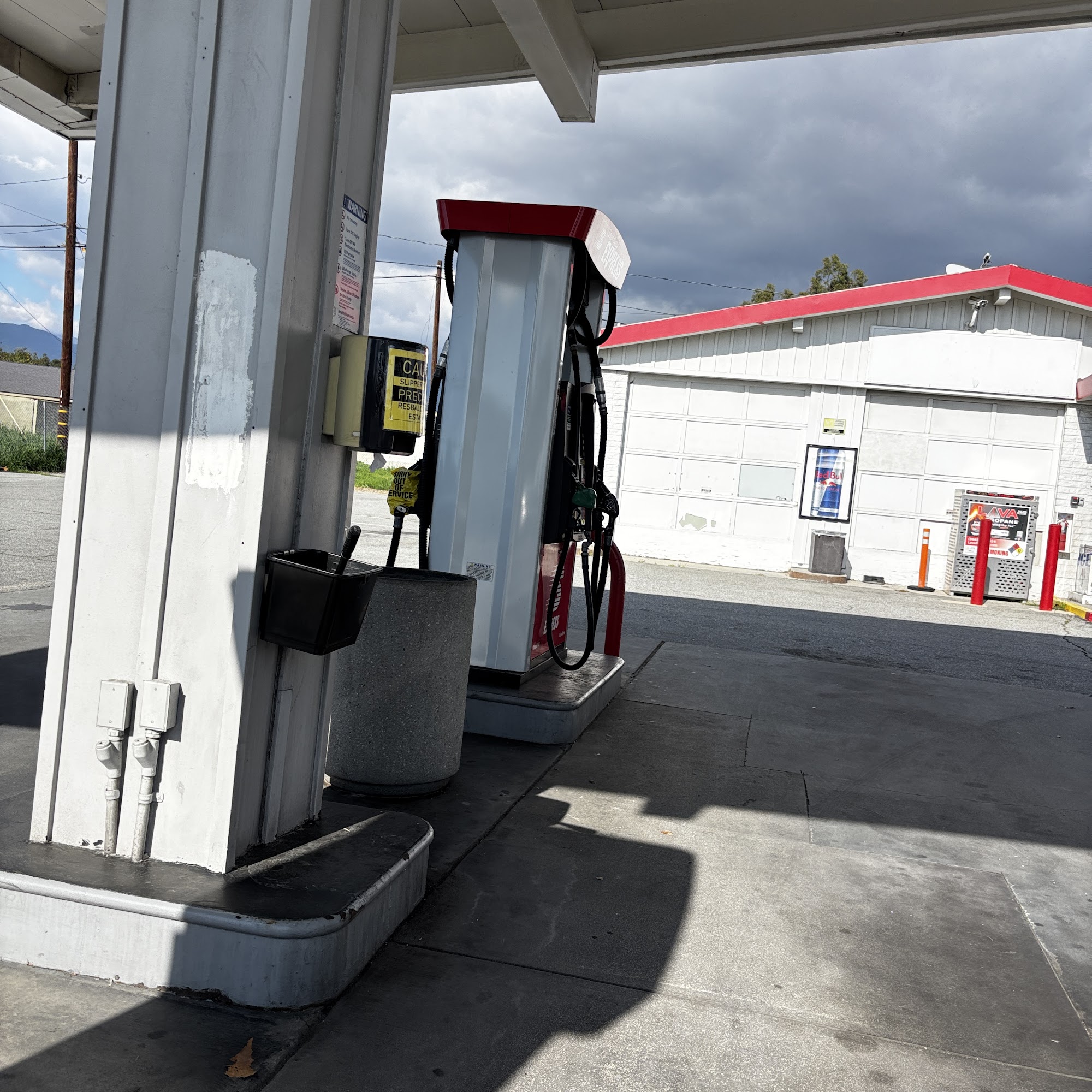 Sketchy little gas station used it once cause it was convenient, definitely isn’t the cheapest, no California lotto here and only one other person was there. Well lit but I think I’d drive a little further to go someone more reputable next time