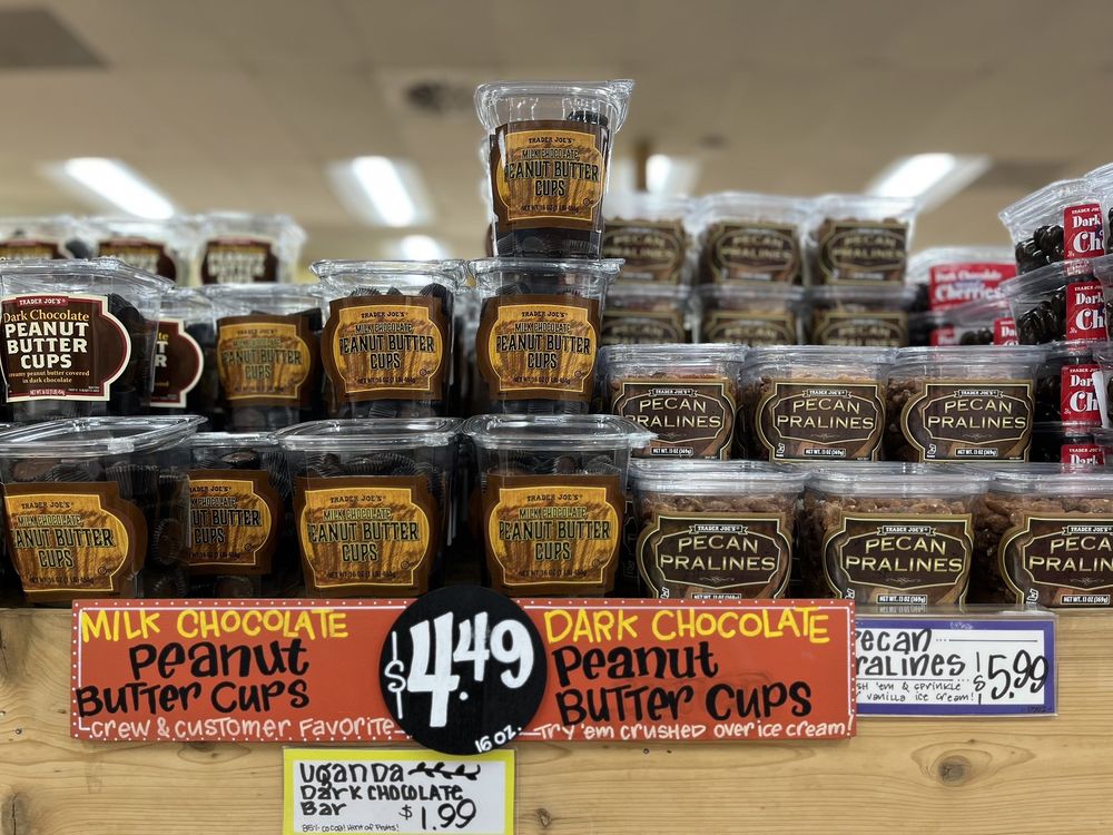 Trader Joe's is a popular neighborhood grocery store known for its unique products, good prices, and friendly staff. Customers appreciate the store's selection of everyday basics such as milk, eggs, meat, bakery items, and fresh produce, along with special items like Mandarin Orange Chicken and Cold Brew Coffee Concentrate. The store offers a vibrant selection of fresh flowers, great cheese, and seasonal items, making each visit interesting. Many reviewers highlight the store’s excellent quality of salads, ice cream, sherbets, and packaged foods. They also enjoy the unbeatable value on wine, beer, and spirits. The store frequently features seasonal and new items, including vegan options like Korean Japchae and French Chocolate Crepe Cookies, which are described as light, flavorful, and addictive. Customers often buy extra items like tote bags, which are reasonably priced and come in various designs. The store is well-stocked, clean, and efficiently run, with staff providing a friendly shopping experience. Parking is plentiful but can fill up during busy times. Overall, Trader Joe's is loved for its unique offerings, good prices, and a convenient, enjoyable shopping experience every day.