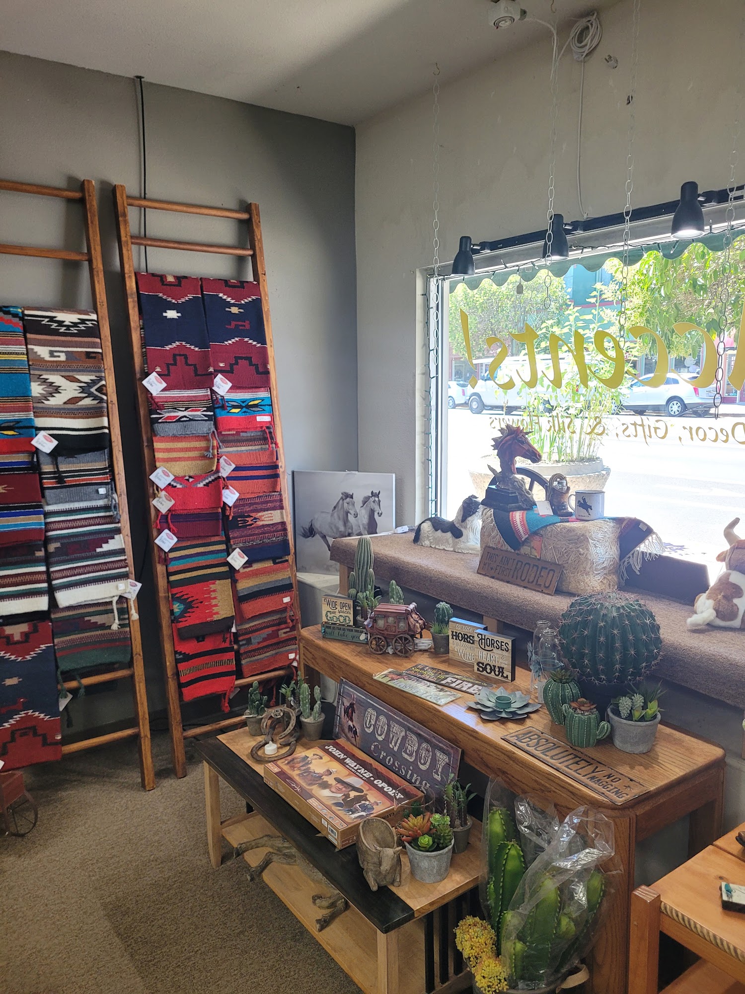 We offer gifts & accent pieces in many styles including Western, Farmhouse, Lodge, Traditional, Beach, Modern. & Garden. We have Seasonal Decor to give most of your Holidays that special touch & we decorate 7 different Christmas Trees at Christmas time with a wide variety of themes & ornaments, stockings, & decor. We are adding more craft supply items, along with faux flowers or greenery for the projects you want to do. or we will make one for you. Don't forget to buy your "Leanin' Tree" Cards, Magnets, List Pads, or Note Cards while you are here to make your gift shopping one stop. We love our customers & enjoy bringing special things to you for your enjoyment!