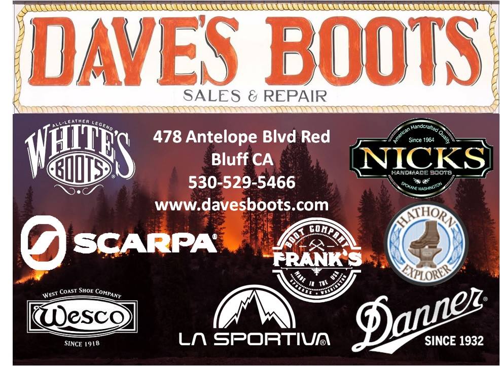 A Red Bluff institution, Dave's Boots is a family owned and operated one stop shop for everything from custom made perfect boots to shoelaces. Expert Cobbler on sight too. Everything I have purchased here has lasted me years, a rare find in today's times. If you are in town, walk in and you will see what I mean.