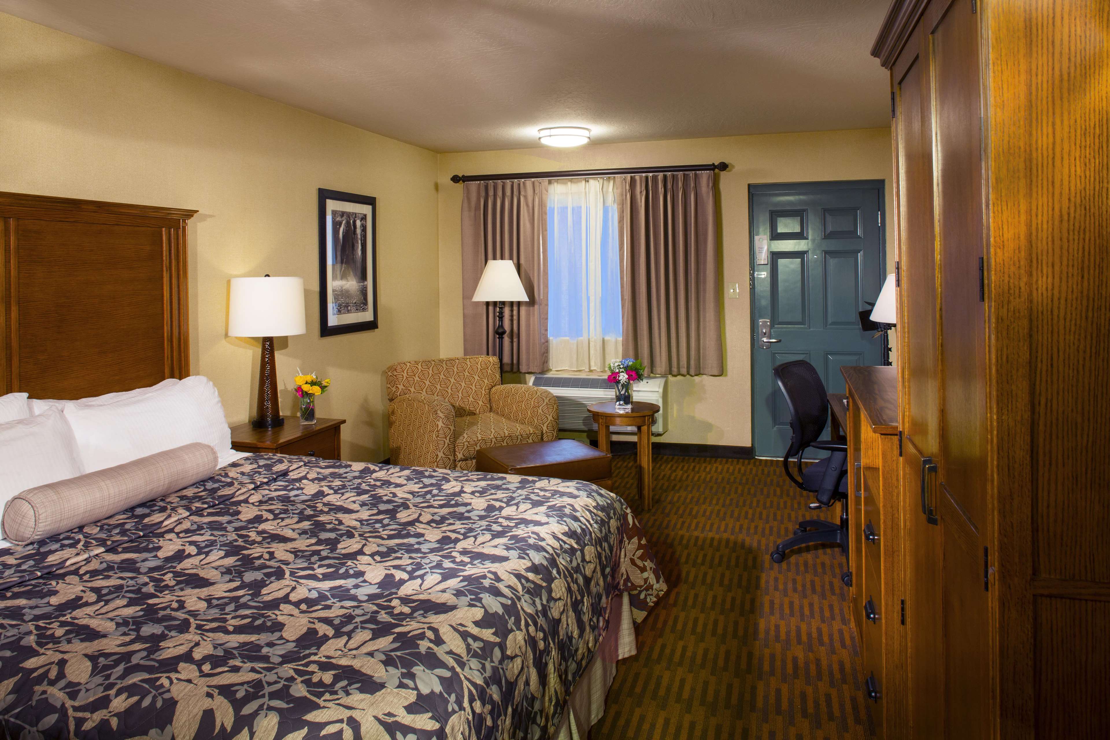 The Best Western Plus Hilltop Inn is a clean and friendly hotel located off I-5. Guests frequently describe pleasant stays, noting the spacious, clean, and well-maintained rooms with comfortable beds, cozy pillows, good lighting, and ample charging stations. The staff are generally very friendly, nice, and welcoming, with a security guard present on the premises at night for safety. A significant highlight is the great breakfast, served as a buffet in the on-site C.R. Gibbs restaurant. It offers lots of good quality options like eggs, sausage, biscuits and gravy, oatmeal, and french toast, with staff keeping the food fresh. The attached restaurant is also delicious for other meals. The hotel features convenient parking, beautiful grounds with flowers, and amenities like a swimming pool and jacuzzi. Its location provides walkable access to several restaurants, fast food, a shopping center, and convenience stores. While the road nearby is busy, many find the rooms quiet. A minor critique involved a single staff member's attitude, but this was an exception. The overall experience is excellent, with guests consistently stating they would stay again. The hotel is a clean, quiet place to sleep, offering great service and amenities for both business and leisure travelers.