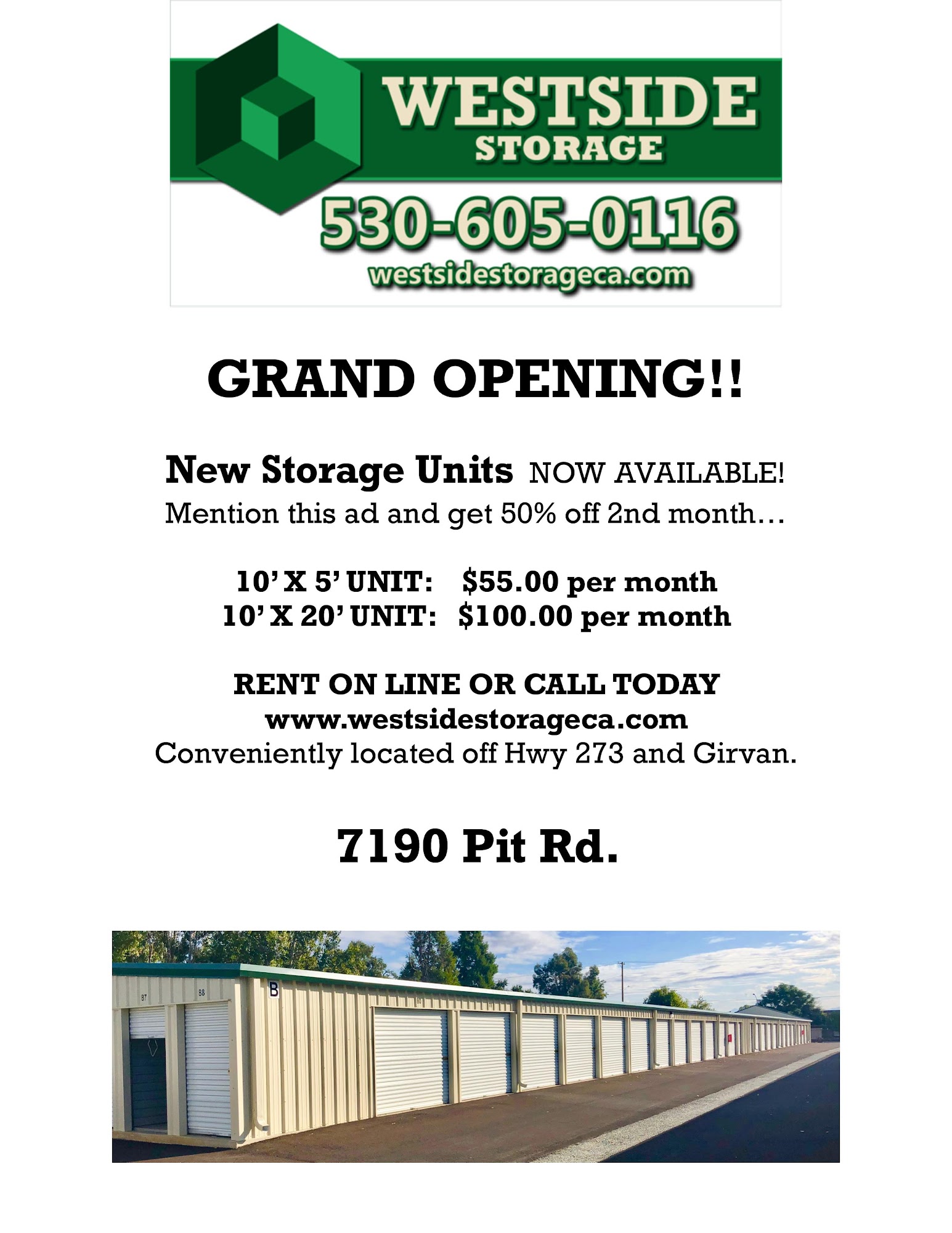 Located in Redding, CA, Westside Storage is a premier self storage facility dedicated to meeting all your storage needs. We offer a wide range of secure and affordable self storage units, with sizes from 10'x5' to 20'x10', starting at just $75 per month. Our storage facility provides convenient amenities, including 24-hour access and handicap-accessible units, all backed by excellent customer service. To make your experience seamless, we offer easy online rentals and bill payment. Browse our available storage units on our website, or contact us with any questions. Renting your unit online is quick and easy!