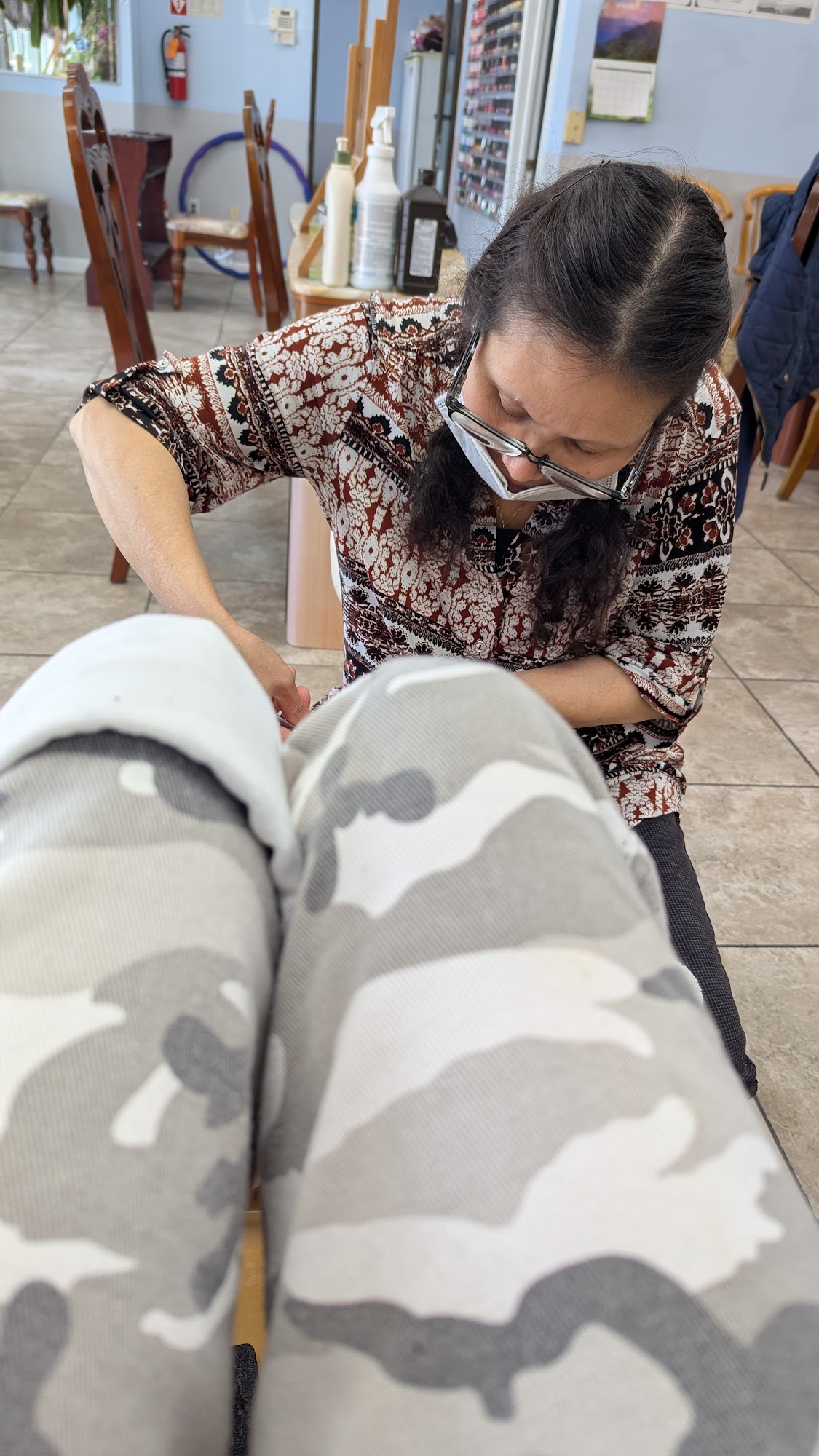 I recommend this place that helped my godmother in her wheelchair. Its not too crowded with tables and spa chairs. Very clean and organized. Sweet people too! Plus the clear polish they used kept my nails looking fresh!Services: Manicure