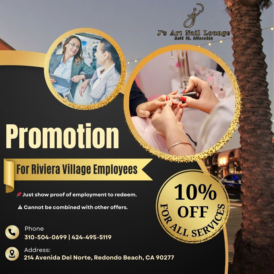 Welcome to J’s Art Nail Lounge in Redondo Beach, CA — your go-to for premium nail care and beauty services. Located across from Friends of the Vine, we’re known for our signature pink awning and sunlit, modern space that offers a relaxing, spa-like experience. From classic manicures and pedicures to custom nail art and advanced extensions, our skilled technicians deliver high-quality, personalized results. Our standout Gel-X extensions offer a natural look, lightweight feel, and long wear. Enjoy luxe lounge chairs, soothing music, complimentary drinks, and over 1,000 polish colors from top brands. We use non-toxic, cruelty-free, vegan-friendly products, ideal for sensitive skin and those who care about clean beauty.