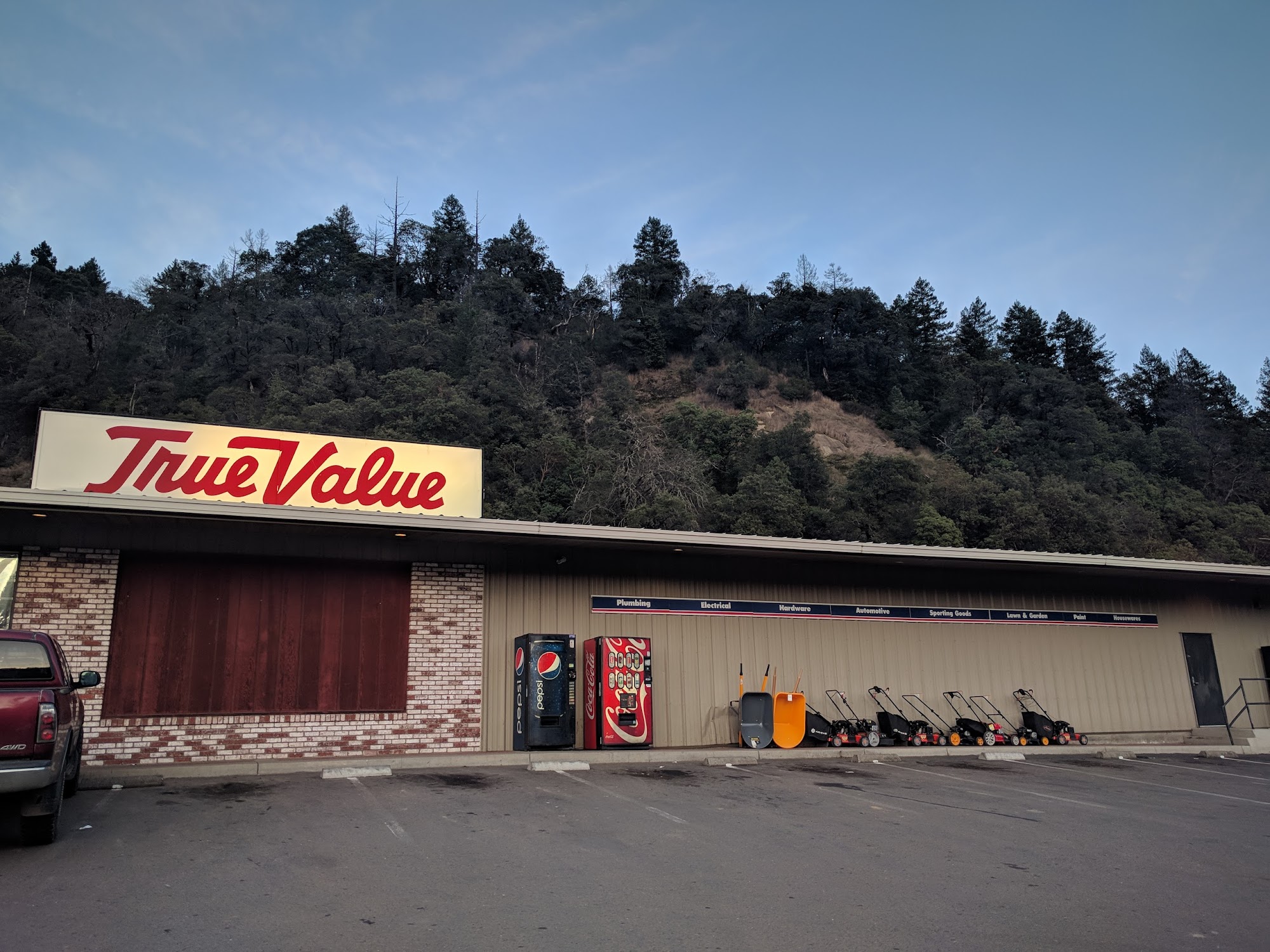 Doomed True Value franchise in boomtown Redway gone bust. Never had a problem here with the owners, ..... the Parkinsons family. Stocked by the corporate Distribution Center trucks out of Woodland CA.. Pic as proof.