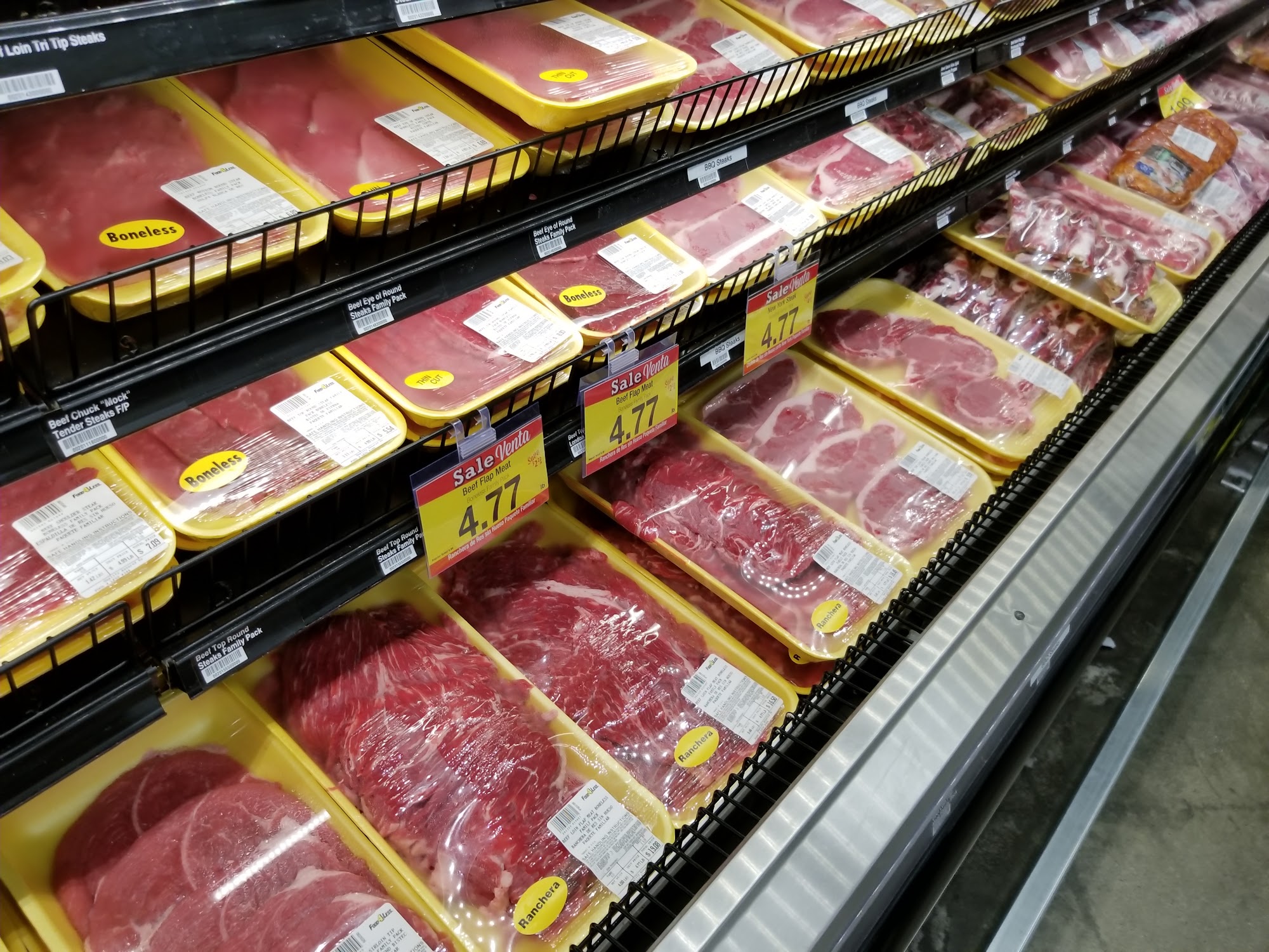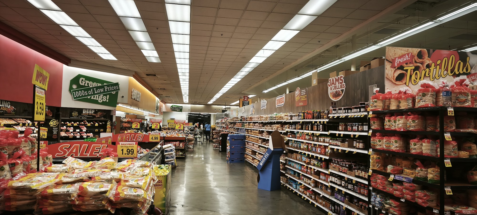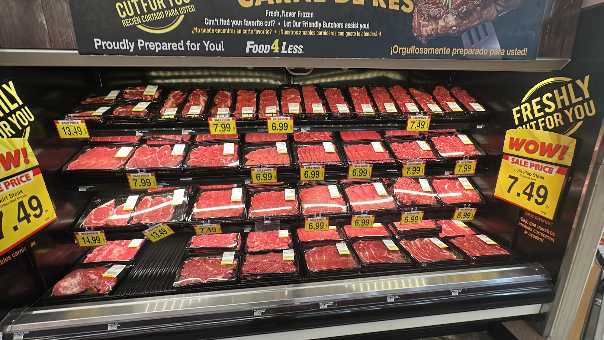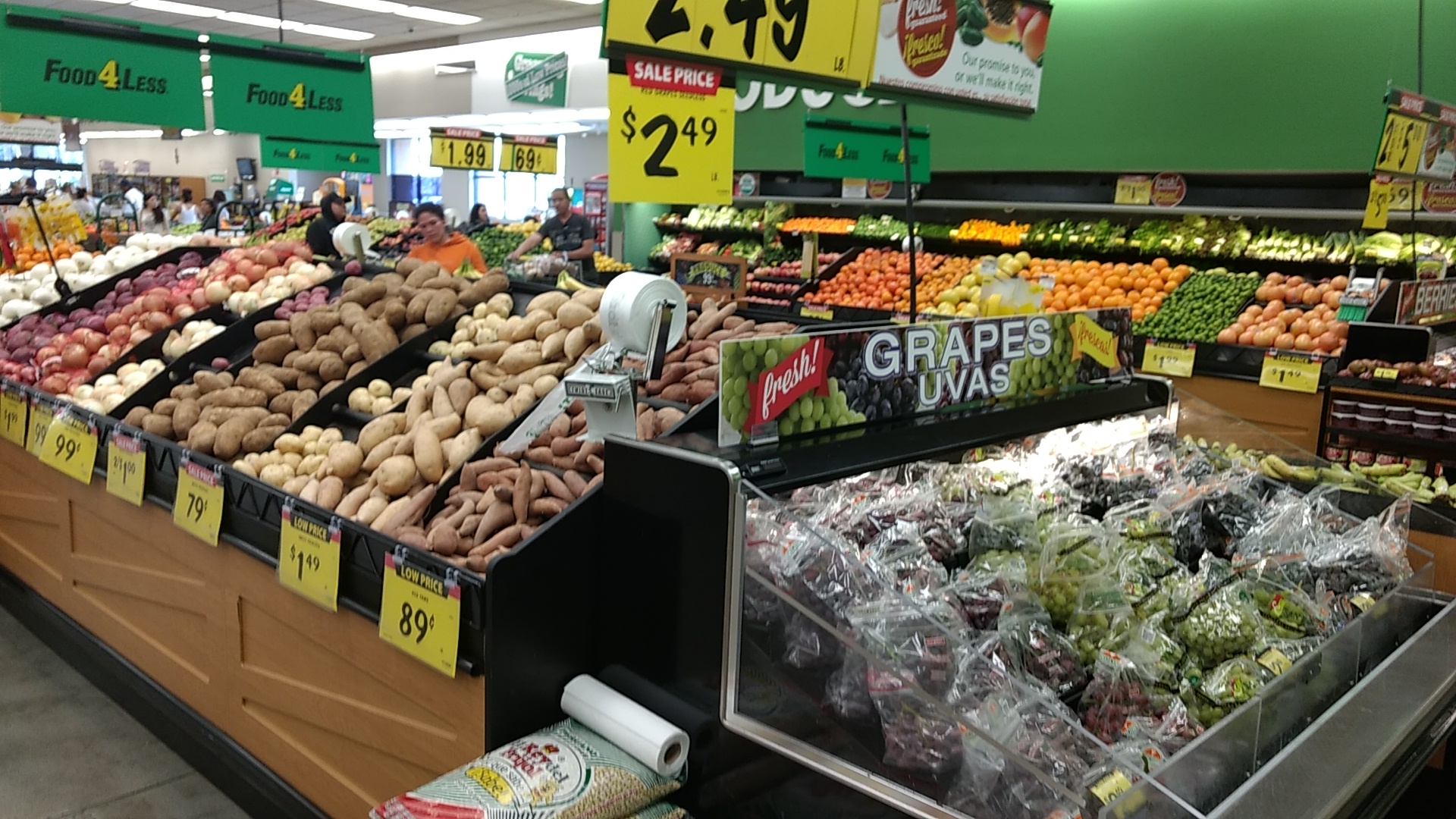 Food4Less is a no-frills, low-cost warehouse-style grocery store that offers a wide selection of bulk items, produce, and health and beauty products at everyday low prices. The store is clean and well-organized, with wide aisles that can comfortably fit two shopping carts. The produce appears fresh and is regularly restocked to meet customer demand. Shoppers can find good deals on featured sale items, including hot food options like seasoned potato wedges which are hot and filling. Parking is easy and accessible, making shopping convenient. While prices are generally lower than other supermarkets, customers should expect to do their own bagging and limited service, as staff are few and may sometimes be unavailable to assist with damaged items or special requests. The store often has clearance deals, such as boxes of beer with more cans than initially expected, offering great value for those who enjoy discovering deals. However, the selection may be limited, with only a few brands or flavors of popular items available. Overall, Food4Less is a good choice for budget-conscious shoppers who prioritize low prices and bulk buying, even if it means less variety and minimal assistance.