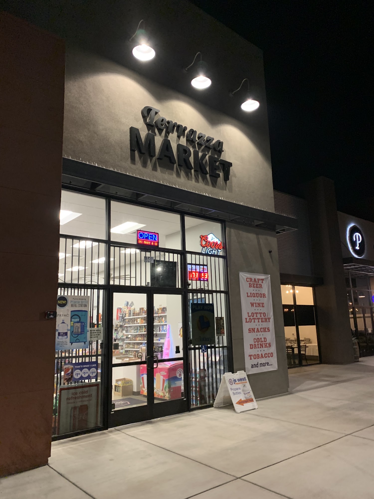 Best Craft Beer in town! Premium Spirits, Craft Beers, Fine Wines, Lotto/Lottery, Snacks, Cold Drinks, Bags of Ice, Grocery/Dairy items, Household Items, and more... Outdoor Self-Serve Water Refill Machine. ATM available inside. Propane Tank Exchange available. Fountain Soda. We have chilled wine, champagne and liquor available! Follow us on Instagram and Facebook @ terrazzamarket