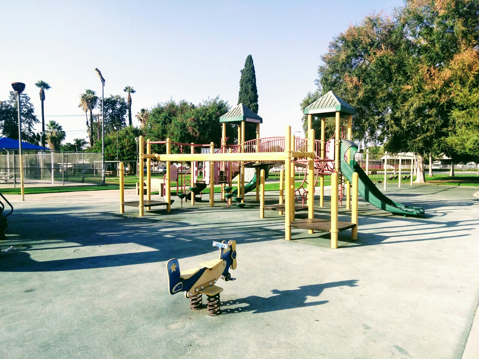 Nice clean park. I love how the bottom of the whole entire playground doesn’t have wood chips like every other parks . Ground cover on playground is soft like a strong sponge lol. Great for kids so they don’t hurt themselves! Love it . Peaceful & Quiet.