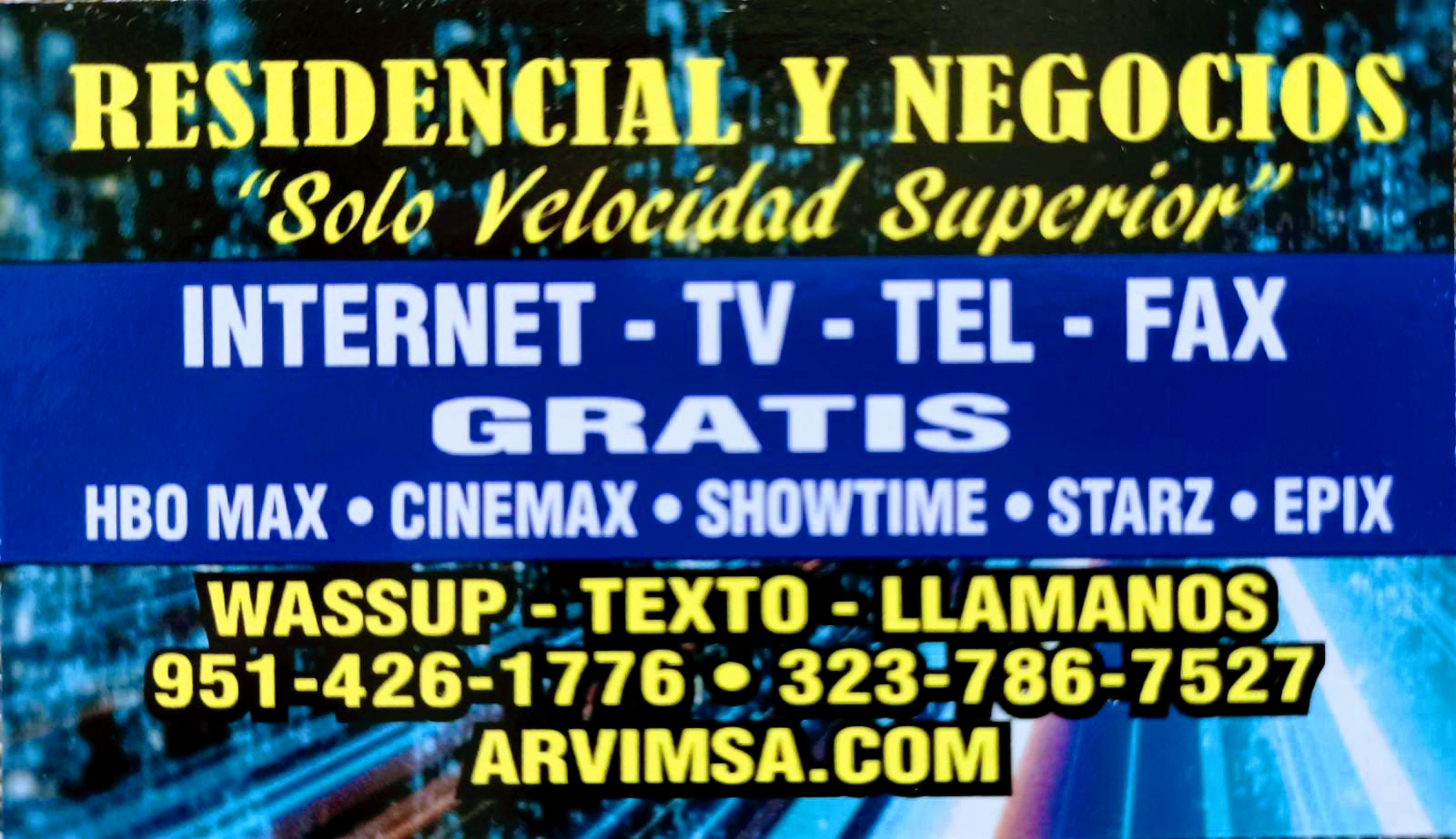 We are Independent Representatives Sellers of entertainment via Cable and Satellite TV in high definition,fast Internet and telephone for both home and business. Always offering solutions according to the budget of our customers because your satisfaccion is my number one priority. Receive now a free estimate via text, email or calling. Thanks for visiting us. Somos independientes representantes Vendedores de entretenimiento vía Cable/Satellite:TV en alta definición,Internet rápida y Teléfono tanto para el Hogar y los negocios.Siempre ofreciendo soluciones de acuerdo al presupuesto de nuestros clientes pues tu satisfacción es mi prioridad número uno. Recibe ahora un estimado gratis via texto,email o llamando. Gracias por visitarnos.