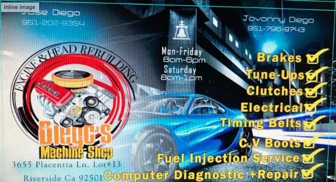 Diego's Machine Shop is a highly regarded automotive service provider that consistently delivers excellent results. Customers praise the shop's prompt service, affordable pricing, and friendly staff, who go above and beyond to ensure customer satisfaction. Whether it's a scheduled maintenance or an urgent repair, the skilled mechanics at Diego's Machine Shop strive to return vehicles in pristine condition, often in just a matter of days. With a commitment to quality and customer care, it's no wonder the business has earned a loyal following among local car owners.