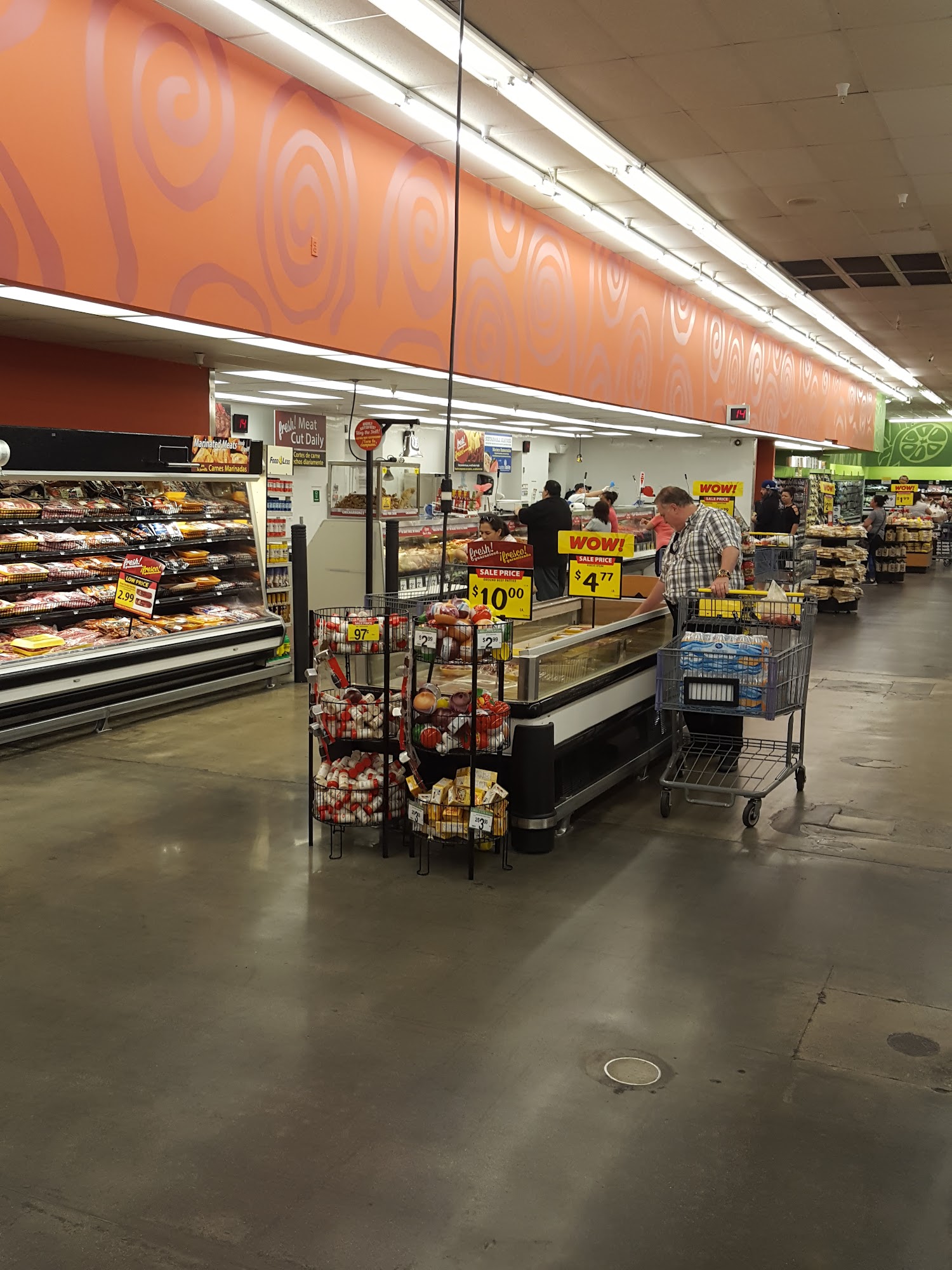 Food 4 Less is a large, no-frills warehouse store offering low prices on a wide selection of bulk groceries, produce, and health and beauty items. The store features well-organized shelves, wide aisles, and plenty of parking, making shopping easy and convenient. Customers appreciate the bakery section, especially the cakes, which are highly recommended and have been praised for years. The store's in-store prices are very affordable, and it carries specialty items like bird treats for pet owners. Staff members are generally friendly and helpful, with some employees providing above-and-beyond service, such as those in the money services department. Overall, Food 4 Less provides a straightforward shopping experience with good value and friendly staff.