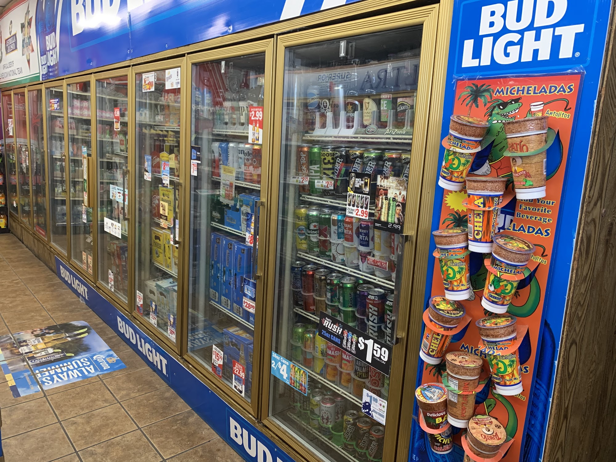 I wanted to break a bill here they wouldn't do it. Bought a soda it was cold that's good. There's a bus bench outside which is awesome (no shade through) you can sit eat sun flower seeds drink a soda wait for the bus. Awesome