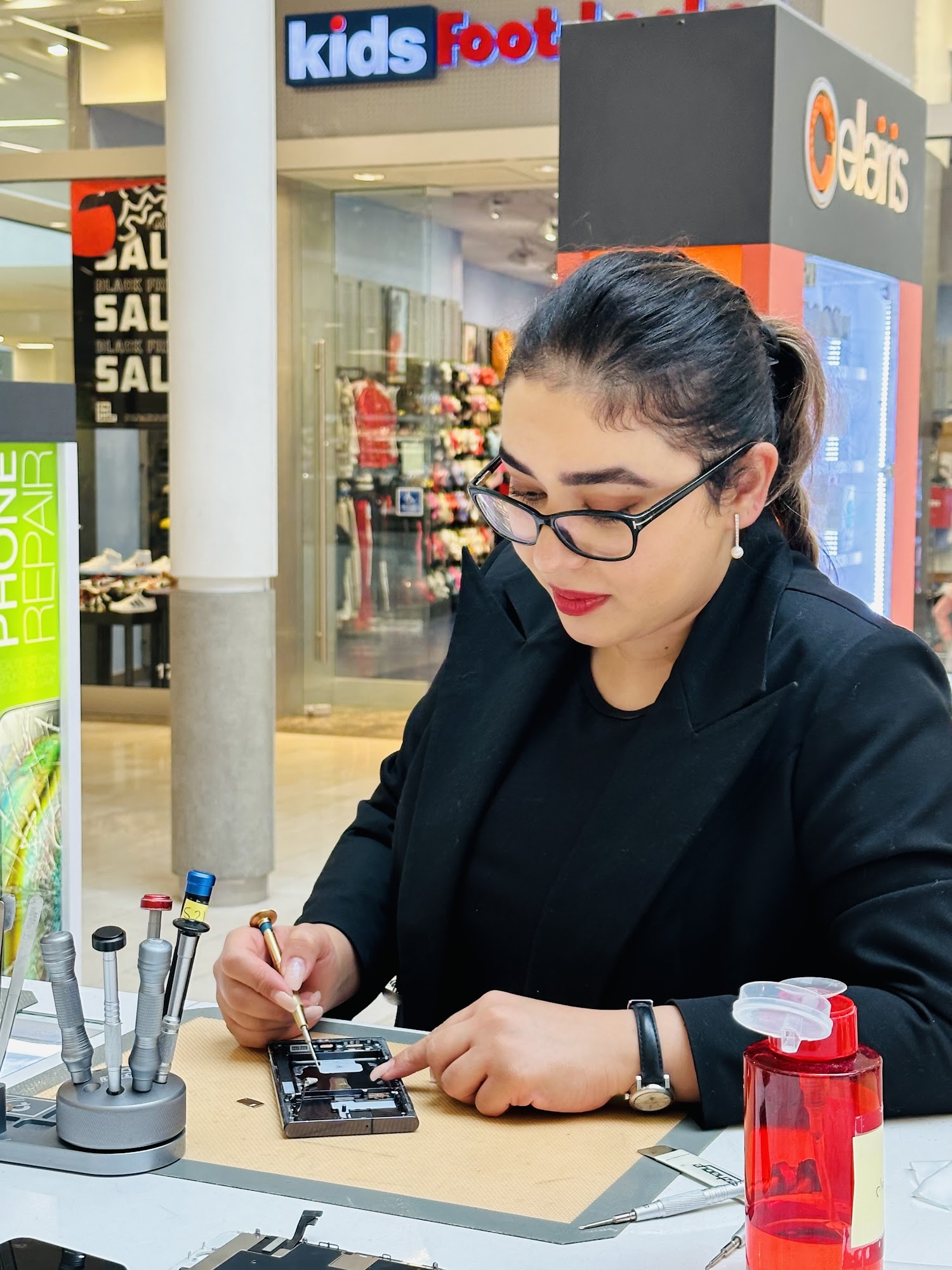 Mary gave us a good deal to fix my charging port for only $25!!! The other store upstairs by lids wanted to charge $90!!!!! And she gave us a free screen protector! I would highly recommend this business if you need anything fixed !!!!!!