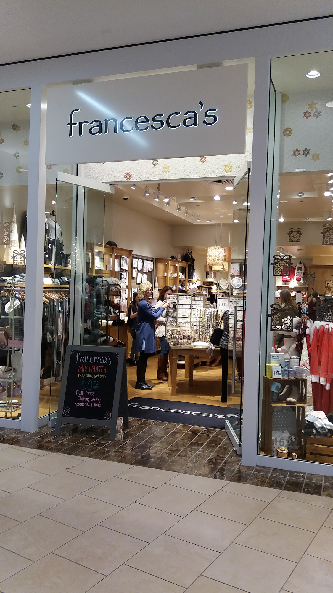 Francesca's is a fun boutique known for its great sales and unique gifts. Customers appreciate the kind and helpful staff, who make dress shopping an enjoyable experience. The store can get crowded at times, but the staff's patience and assistance stand out. The products are of excellent quality, making it a popular spot for finding special items. Overall, visitors enjoy the friendly service and the variety of items available, often returning for more shopping trips. The store provides a welcoming environment for those looking for stylish dresses and distinctive gifts.