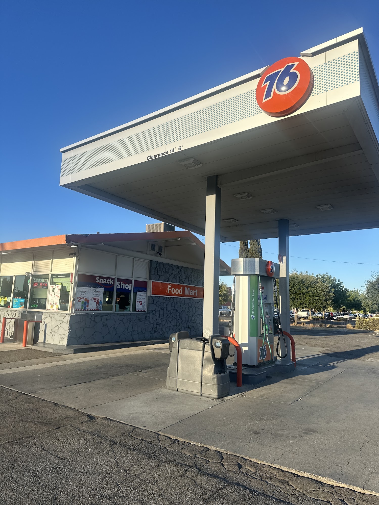76 is a 24-hour gas station that offers a convenient spot for customers to purchase gas, cigarettes, and other necessities. The staff is described as "really cool people" with a "down to earth" attitude, making the experience pleasant for regular customers. While the gas prices may be a bit higher than average, the station provides a clean bathroom and a variety of snacks and drinks, including ice cream and soda, for those in a hurry. Overall, 76 is a decent option for a quick stop, despite some mixed reviews about the staff and pricing.