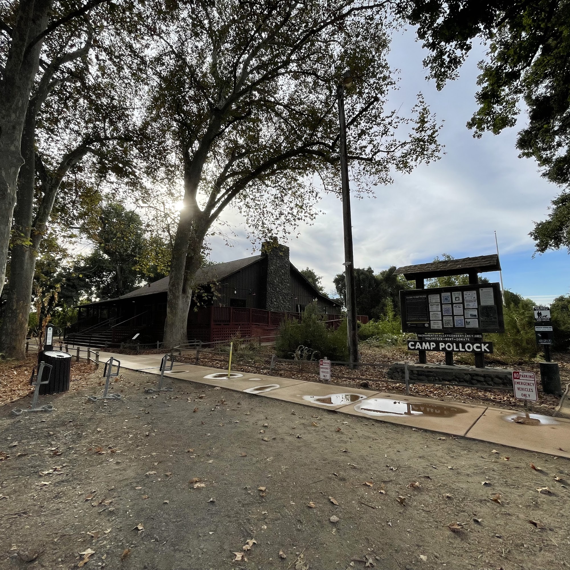 Camp Pollock is a unique gem and beautiful peaceful place located in the heart of the Lower American River Parkway. This 11-acre riverfront site features beautiful grounds with trees, wildlife, and access to the American river. It is a hidden gem for a picnic, river time, or casual exploration, with a few small hikes. The property includes a natural kids play area and a shaded picnic area. It is also a special venue for private events like weddings or parties, nested within beautiful oaks and natural habitat. The old lodge provides essentials for any occasion, with plenty of open space for large gatherings. As a piece of river front land with a long history, it is home to diverse fauna. Donations and private rental fees are essential for the upkeep of this publicly accessible space.