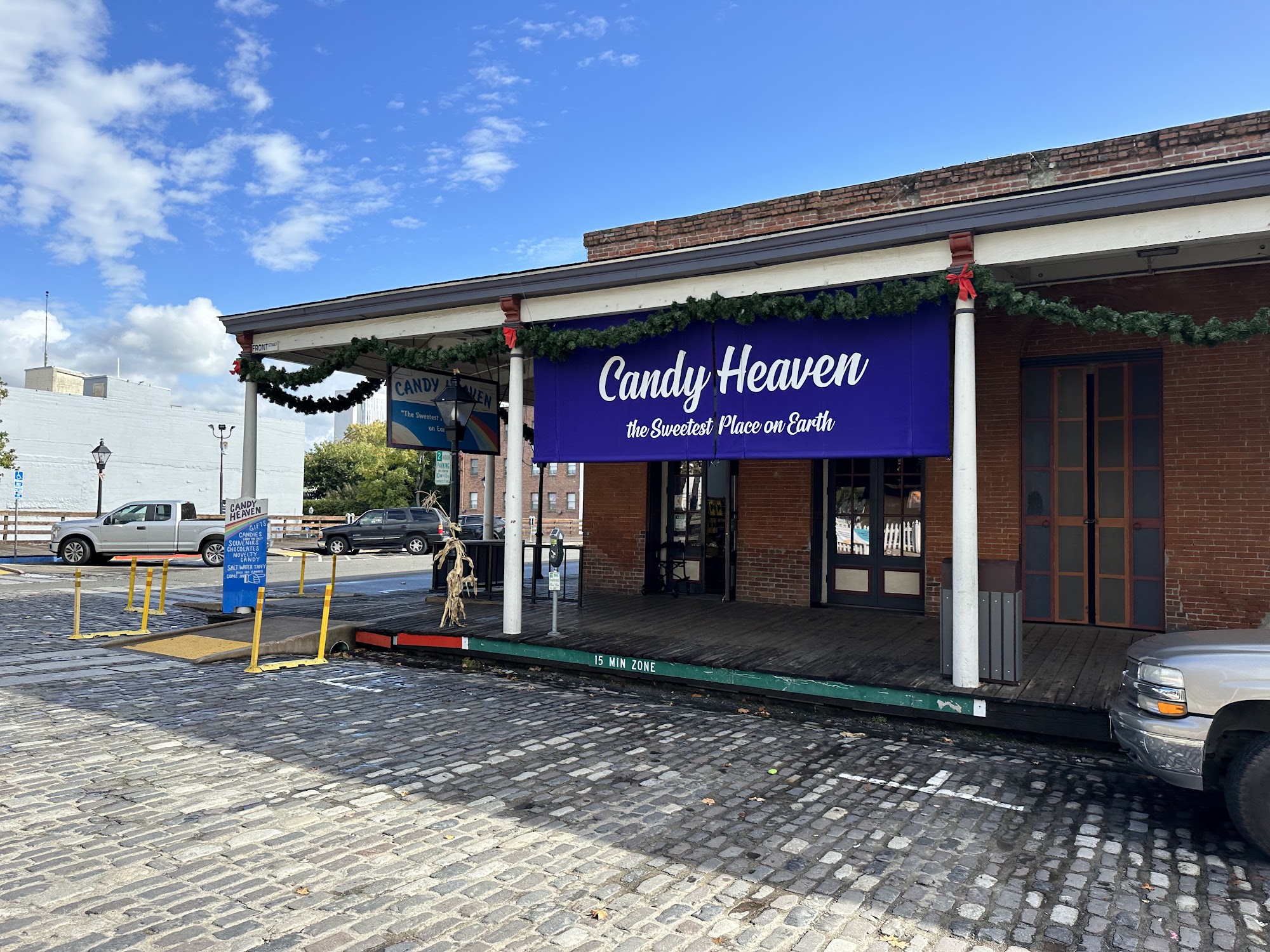 Candy Heaven is a very cool store located in Old Sacramento on the waterfront. It is a must on the bucket list, a fun place that feels like Willie Wonka's of the old West. They have every type of candy you could think of, with plenty of rare vintage and throwback stuff from childhood. They offer so many options, including taffy, gummies, and unique items like a Pistachios & Sea Salt in Milk Chocolate bar. The store is very clean with decent prices and provides a high level of service. It is a great area and a better choice than other nearby stores.