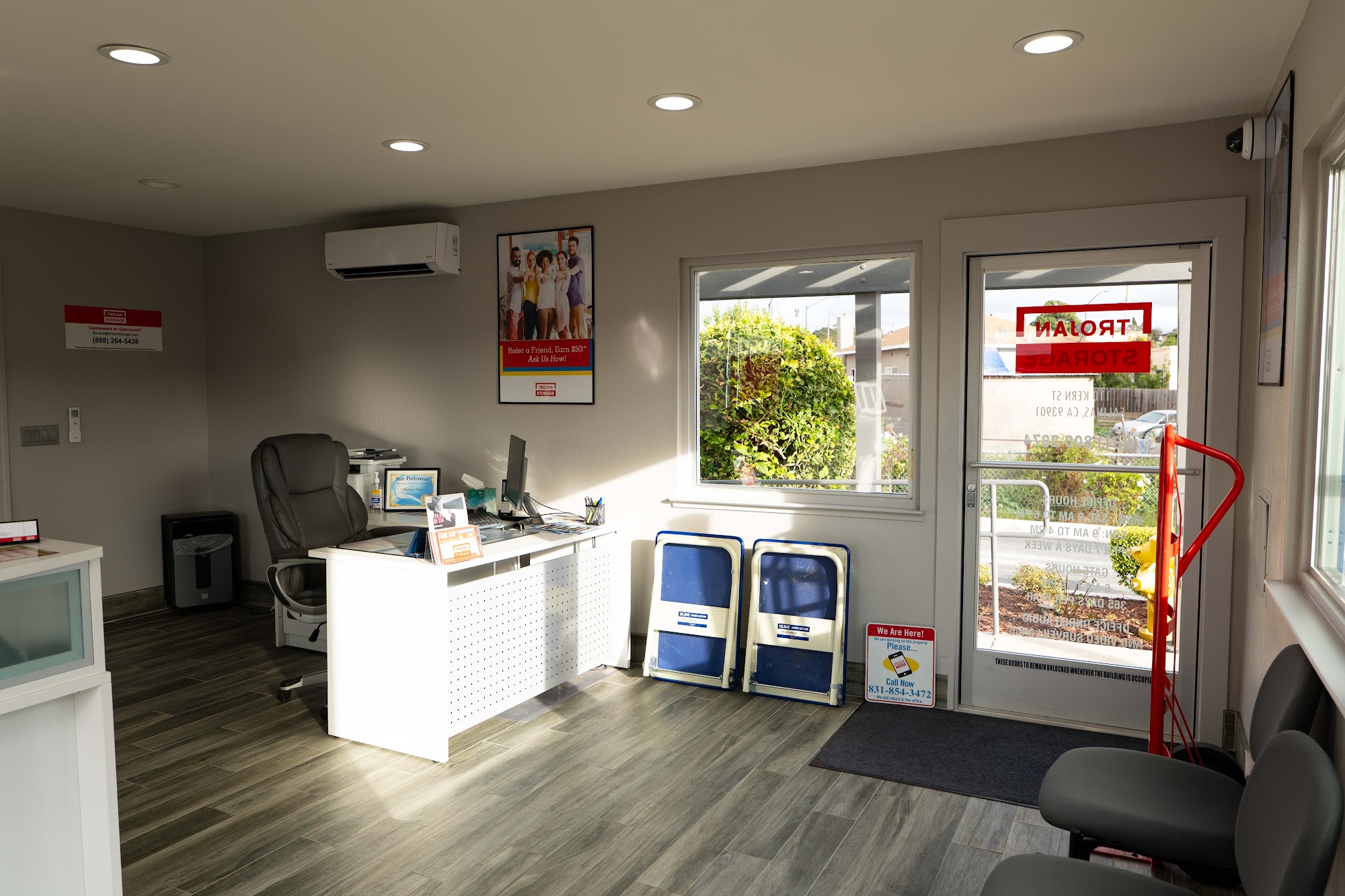 At Trojan Storage of Salinas Kern, we make storing your things fast, easy, and straightforward. Our modern self storage facility on Kern Street, near In-N-Out Burger, offers the best self storage solutions around. Outfitted with high-tech features like climate-controlled storage, top-notch digital security, drive-up ground-floor units, and convenient online bill payment, Trojan is the best self storage facility in Salinas. Whether you need a large unit, a small space to store a few items, or a protected parking spot for your boat or RV, Trojan Storage of Salinas Kern has got you covered. Call or stop by today to learn more!