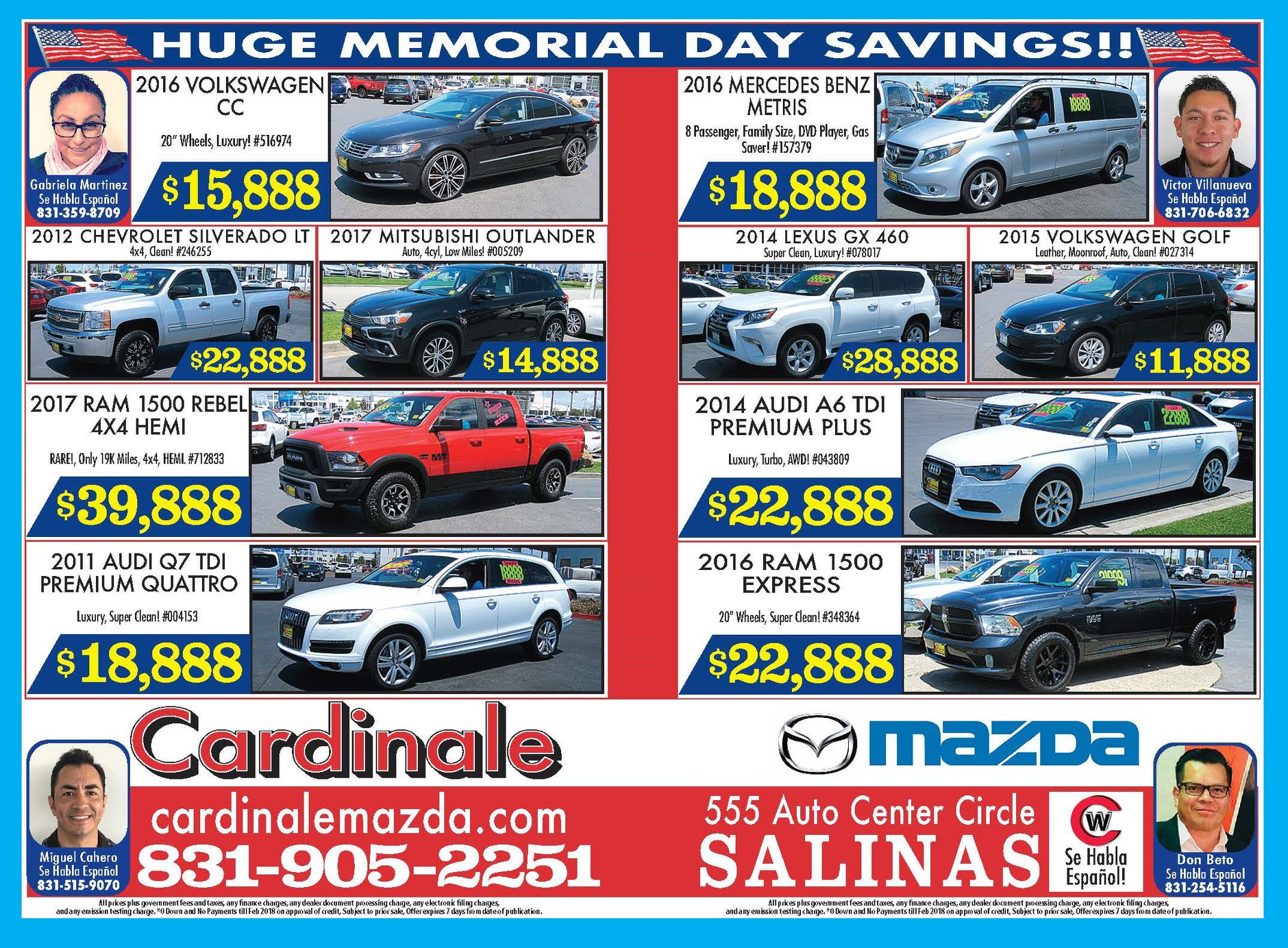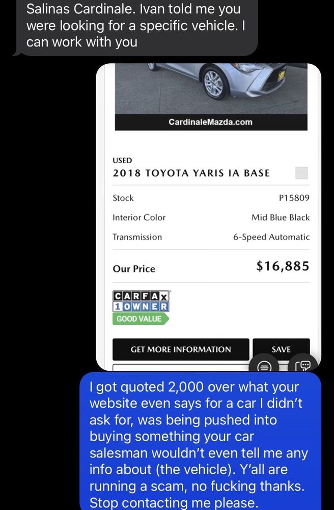 Cardinale is truly the place to go! They will forever have our family’s business. A huge thank-you to Manny for helping us find our new vehicle and to Armando for always going above and beyond. We appreciate you so much, Cardinale Mazda!
