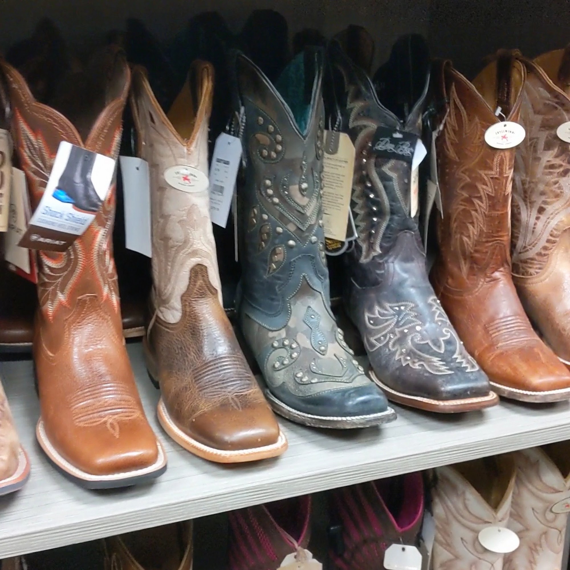 Lot of boots and work shoes. Lots of apparel also. All the footwear is out, nothing in the back. Everything is organized and neat. Impressive selection.