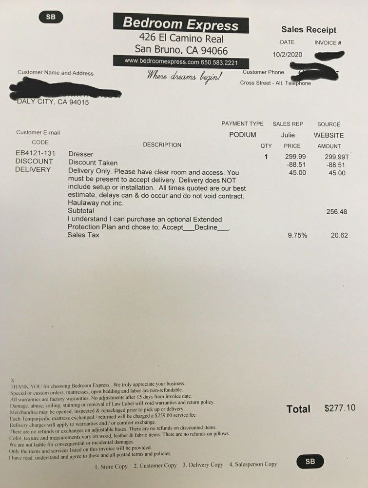 Needed to purchase bedroom furniture for two bedrooms. I walked out of Bedroom Express so happy with the deal I got. Quality furniture. Delivery was prompt and the delivery men were pros, respectful and courteous. Overall superb experience from beginning to end.
